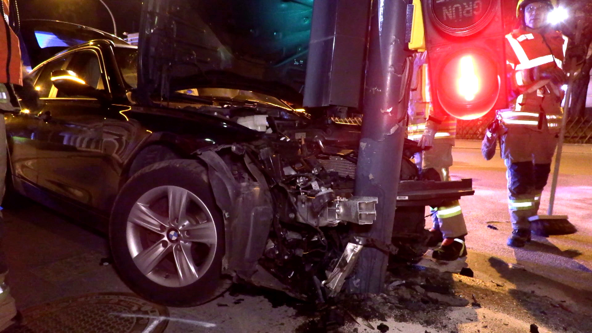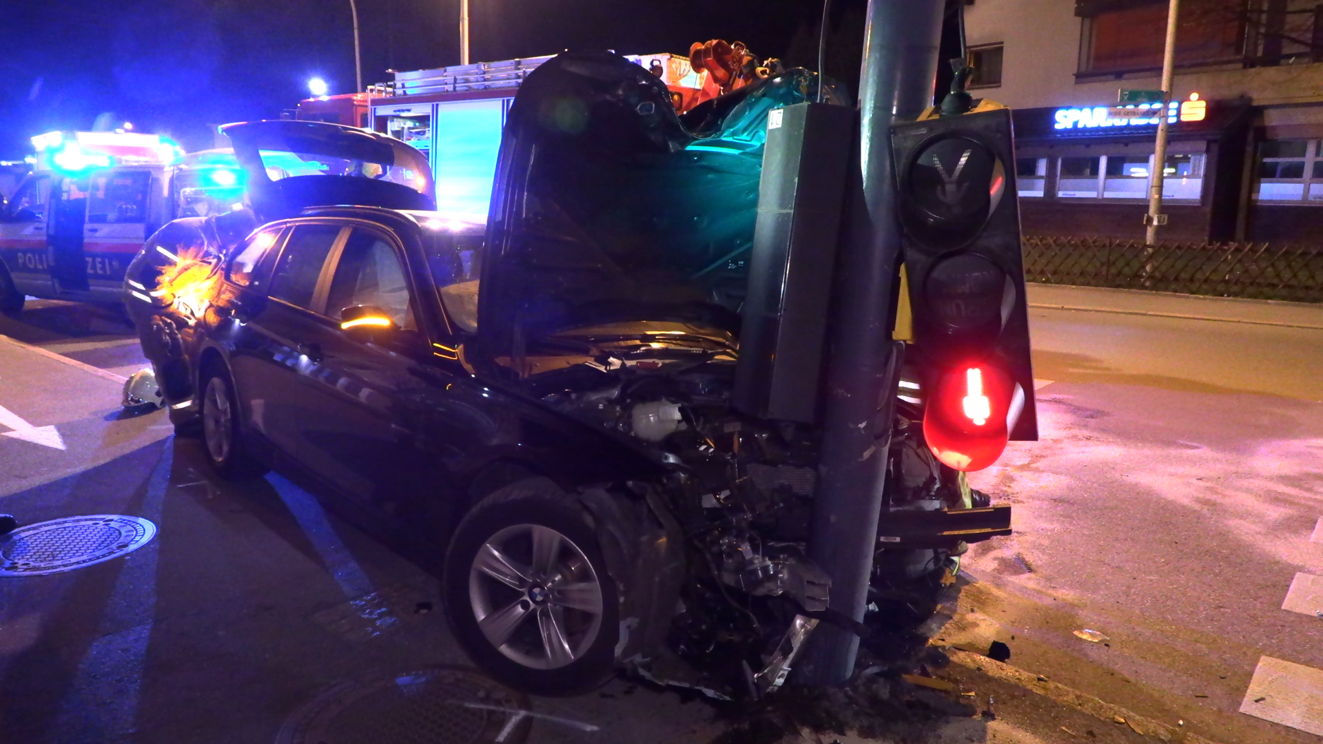 Gegen 23.30 Uhr kollidierte er im Kreuzungsbereich Hofsteigstraße - Maria-Theresien-Straße, der sogenannten "Lustenauer-Hof-Kreuzung", frontal mit der dortigen Ampelanlage.