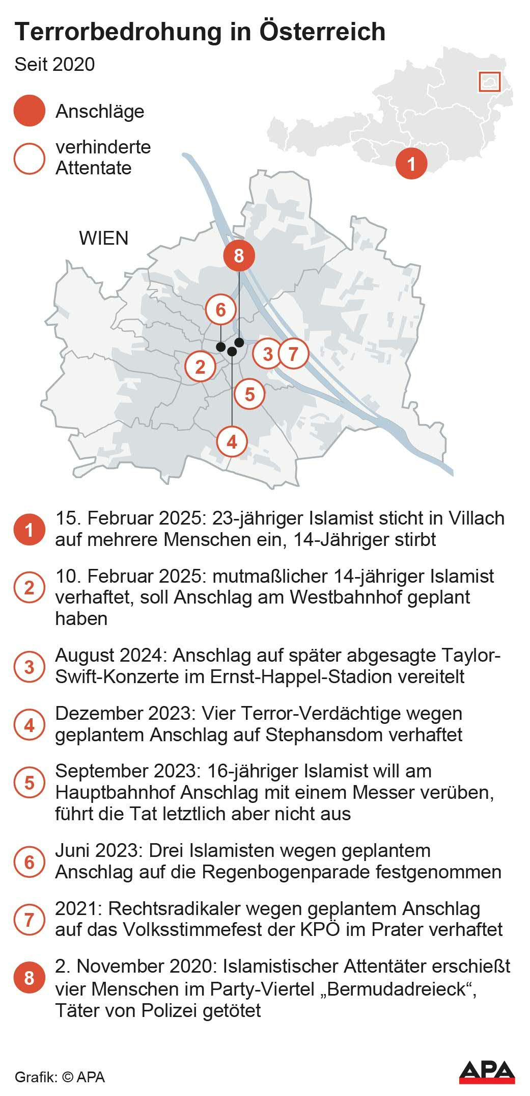 Der 14-Jährige befindet sich seit 12. Februar wegen Tatbegehungs- und Tatausführungsgefahr in U-Haft. Das teilte die Sprecherin der Landesgerichts, Christina Salzborn, auf APA-Anfrage mit. Der U-Haft-Beschluss ist rechtswirksam. Der 14-Jährige machte vor der Haftrichterin keine Angaben.