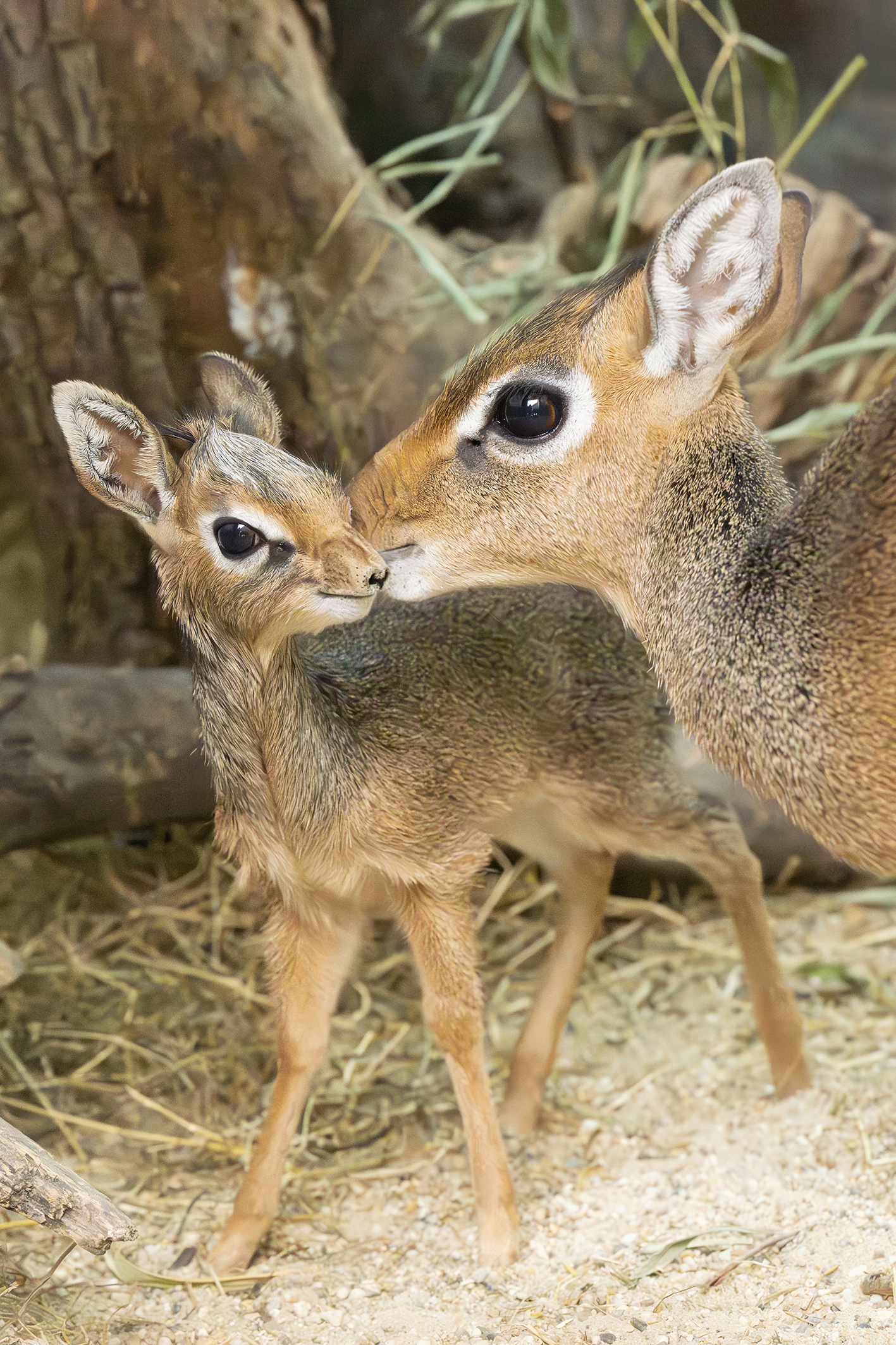 Wer die beiden Jungtiere gegenüber dem Elefantenhaus besuchen möchte, kann dies auch während der Weihnachtsfeiertage täglich von 9:00 bis 16:30 Uhr tun. Etwas Geduld ist jedoch gefragt. „Kirk-Dikdiks sind sogenannte Ableger. Die Jungtiere liegen in den ersten Lebenswochen meist gut vor Fressfeinden versteckt im Gras und werden von der Mutter regelmäßig zum Säugen aufgesucht. Sie folgen aber den Elterntieren auch jetzt schon immer wieder durch die Anlage“, erklärt Tiergartendirektor Dr. Stephan Hering-Hagenbeck.