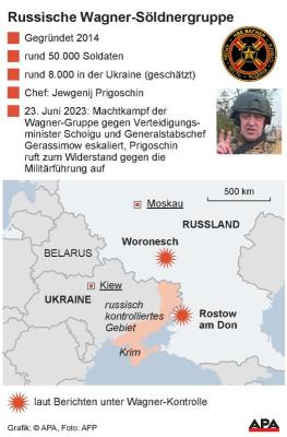 Am Freitagabend war der seit Langem schwelende Machtkampf zwischen dem russischen Söldnerführer Jewgeni Prigoschin und der russischen Militärführung eskaliert. Kämpfer der Wagner-Truppe marschierten von der Ukraine aus mit dem Ziel nach Russland ein, die Militärführung in Moskau zu stürzen. Die Wagner-Söldner übernahmen am Samstag nach eigenen Angaben die Kontrolle über Militäreinrichtungen in Rostow.