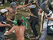 Anhänger rivalisierender Gewerkschaften lieferten sich in der Nähe des Mausoleums auf einem ehemaligen Landsitz Peron Schusswechsel und bewarfen sich mit Flaschen und Steinen.