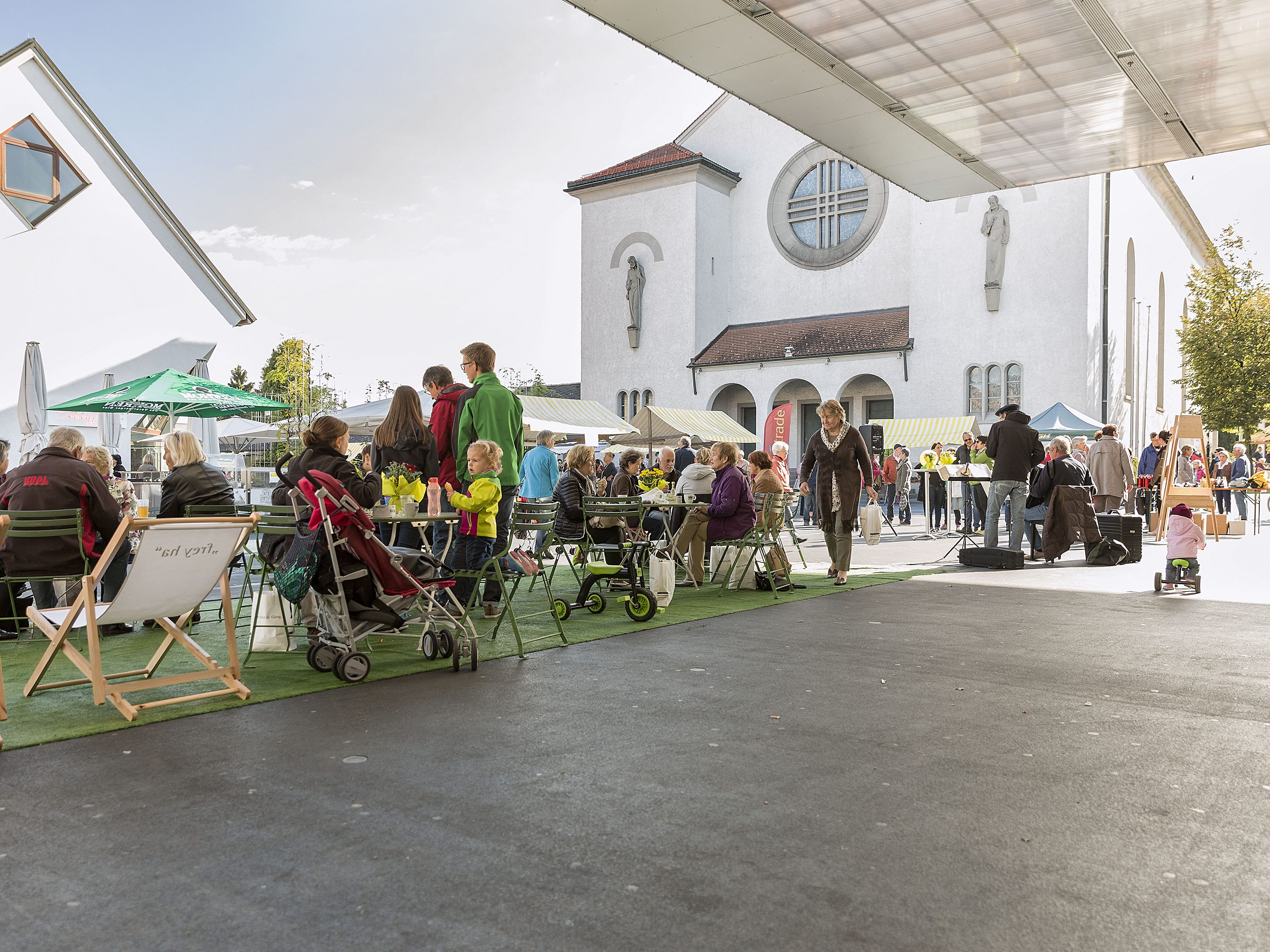 Lustenau lädt zum Absatteln beim Radmarkt und gemütlichen Tafeln am Platz. (Foto Lukas Hämmerle)