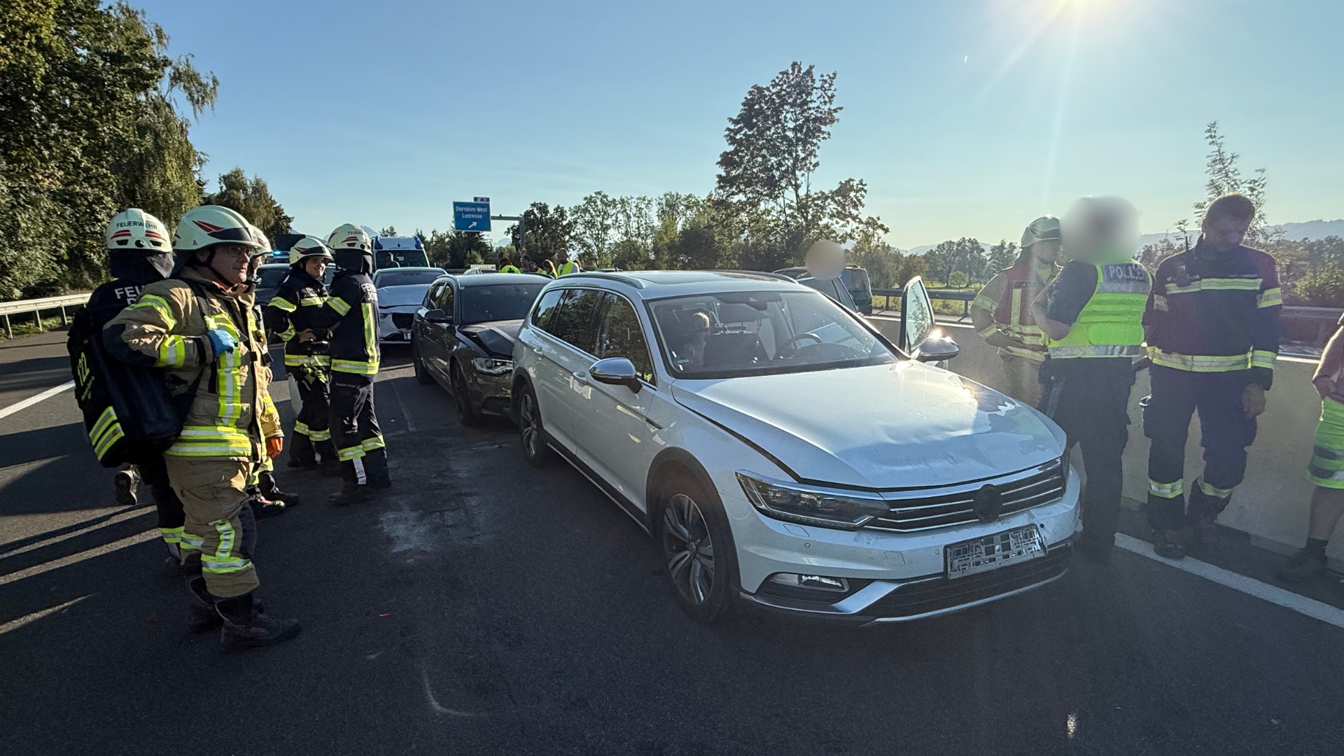 Am Donnerstag, dem 18. September 2025, gegen 17 Uhr, kam es auf der A14 in Fahrtrichtung Deutschland zu massiven Verkehrsbehinderungen. Auf Höhe der Ausfahrt Dornbirn West bildete sich eine Kolonne. Ein Pkw-Lenker auf der Überholspur konnte nicht mehr rechtzeitig bremsen – er prallte auf das Heck eines vorausfahrenden Wagens und löste damit eine Kettenreaktion aus, bei der insgesamt vier Fahrzeuge ineinandergeschoben wurden.