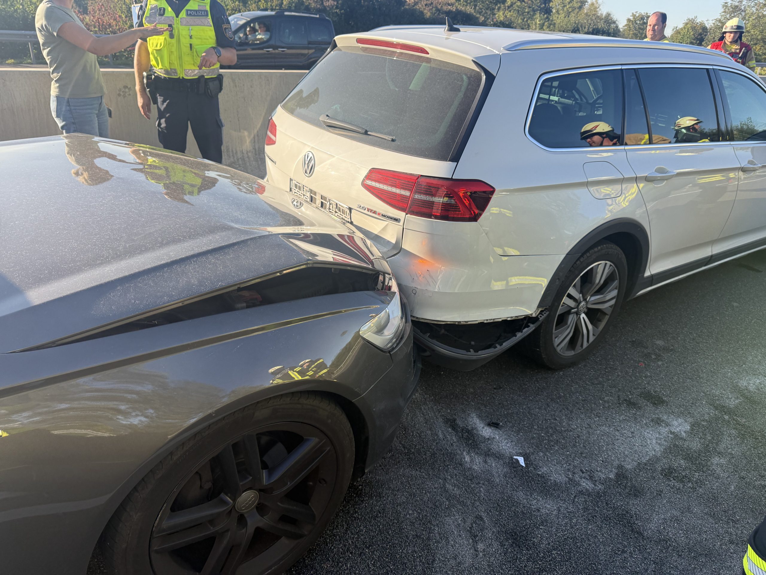 Zwar blieb es bei diesem Auffahrunfall bei erheblichem Blechschaden, verletzt wurde aber niemand. Doch während Polizei und Einsatzkräfte noch mit der ersten Unfallaufnahme beschäftigt waren, krachte es erneut – und wieder nur wenige Meter entfernt.