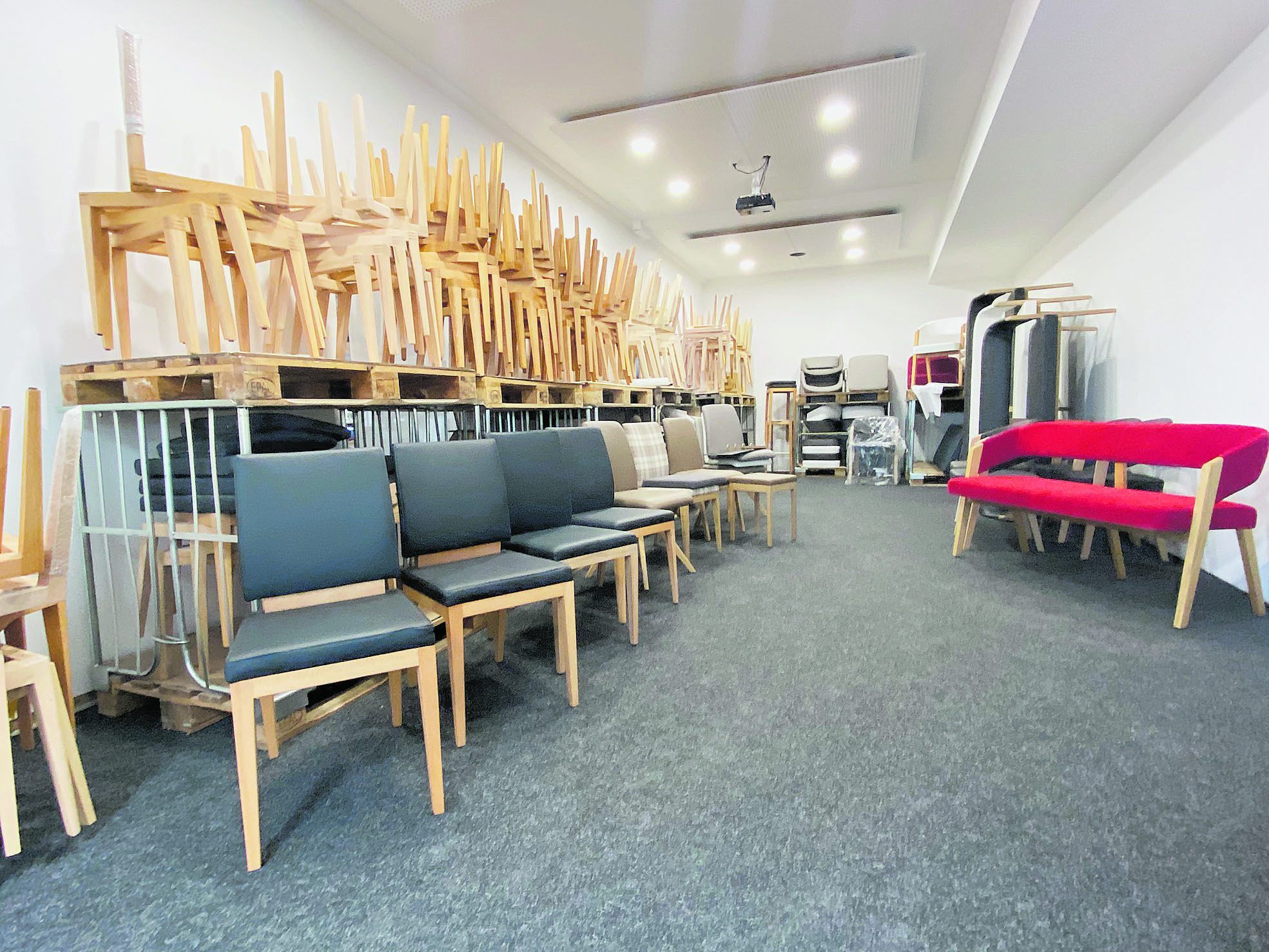 In der Umbauphase geht der Verkauf aber trotzdem weiter. Ausstellungsmöbel und Modelle der aktuellen Kollektion werden teilweise von 35 % bis zu 60 % Nachlass angeboten. Dabei sind neben Bezugsstoffen auch viele Halbfertigprodukte, so dass der Kunde teilweise Oberfläche und Bezugsstoff doch noch wählen kann und trotzdem in den Genuss einer starken Preisreduzierung kommt.