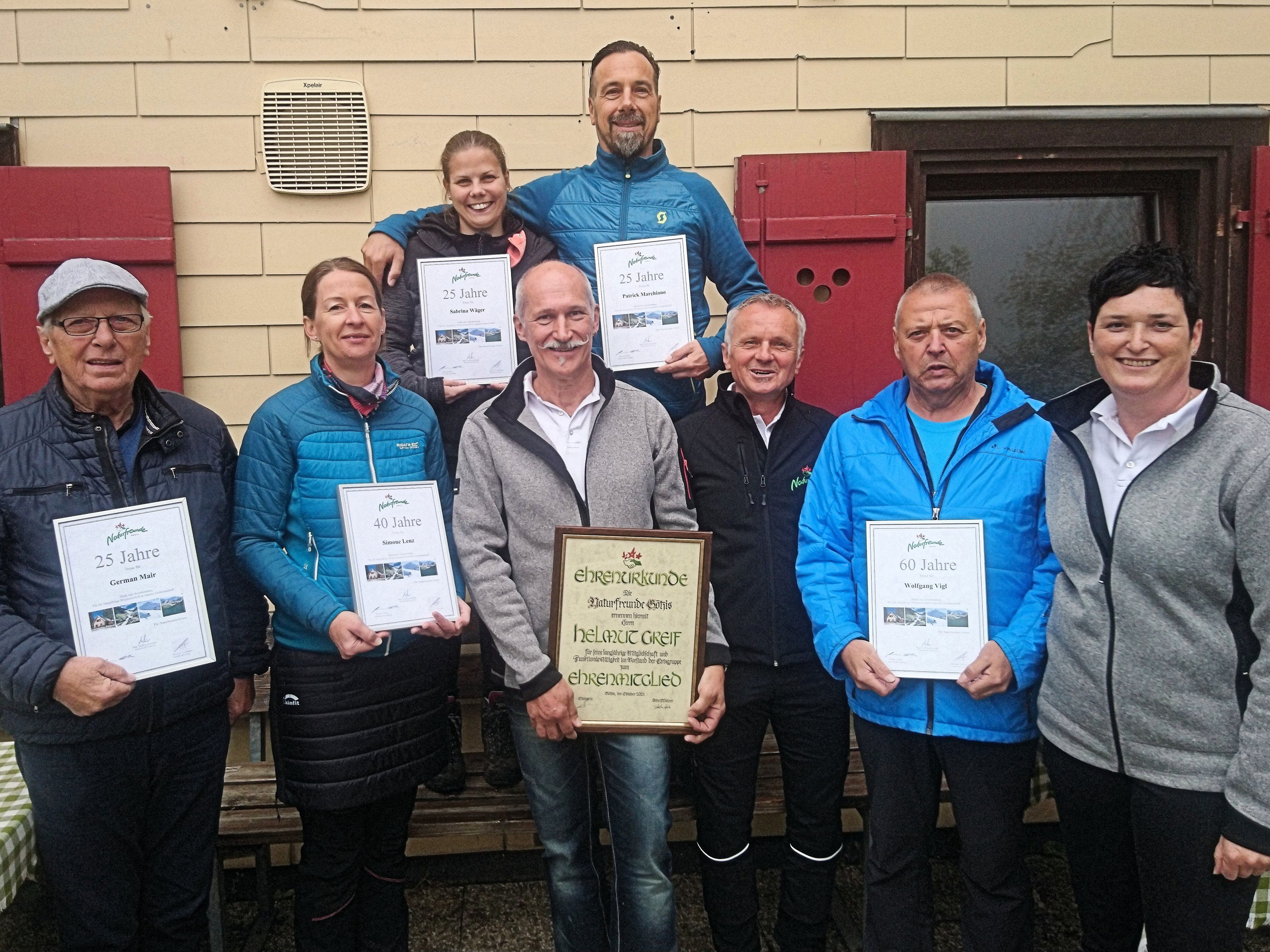 Die höchste Ehrung hat unsere Kassier Helmut Greif verdient. Er wurde mit der Ehrenurkunde von den Naturfreunden zum Ehrenmitglied ernannt.