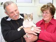 Höchst - "Meine Bea!" ist aus dem Behandlungszimmer der Höchster Kleintierpraxis zu hören. Die Wiedersehensfreude ist riesengroß: Schließlich waren es vier ewig lange Tage für das verzweifelte Ehepaar Ernst und Waltraud Kanner aus Höchst – vier Tage, an denen sie nicht wussten, was mit ihrer geliebten Miezekatze passiert ist.