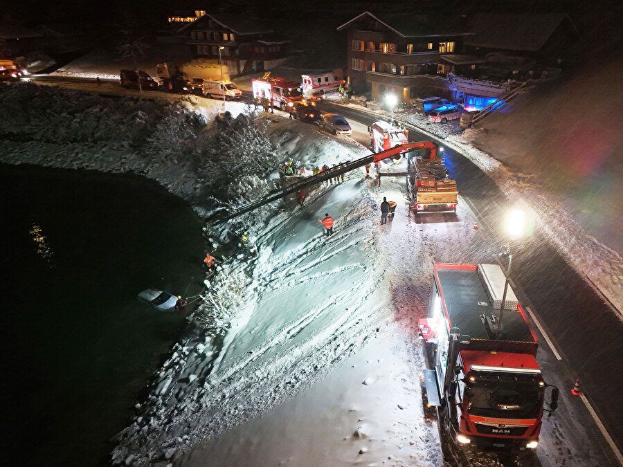 • Auto stürzt in den Lungerersee – Feuerwehrkommandant zieht Fahrer und Kind aus dem Wagen
