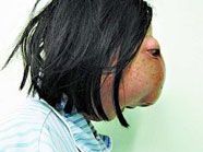 Doktor Liao Quiqing, der sie im Krankenhaus von Lishui Zhejang in Südchina behandelt, sagt: “Wu leidet bereits an einer schweren Gesichts-Deformierung, einer Fibrösen Dysplasie. Sie kann weder durch ihre Nase atmen oder riechen noch korrekt sehen. Trotzdem ist sie sehr tapfer und beschwert sich nie, obwohl die Schmerzen enorm sein müssen. Da der Tumor schon zwei Drittel ihres Gesichts eingenommen hat, müssen wir ihn dringend entfernen und wollen dann mit einer Chemotherapie und einer Strahlenbehandlung beginnen.”