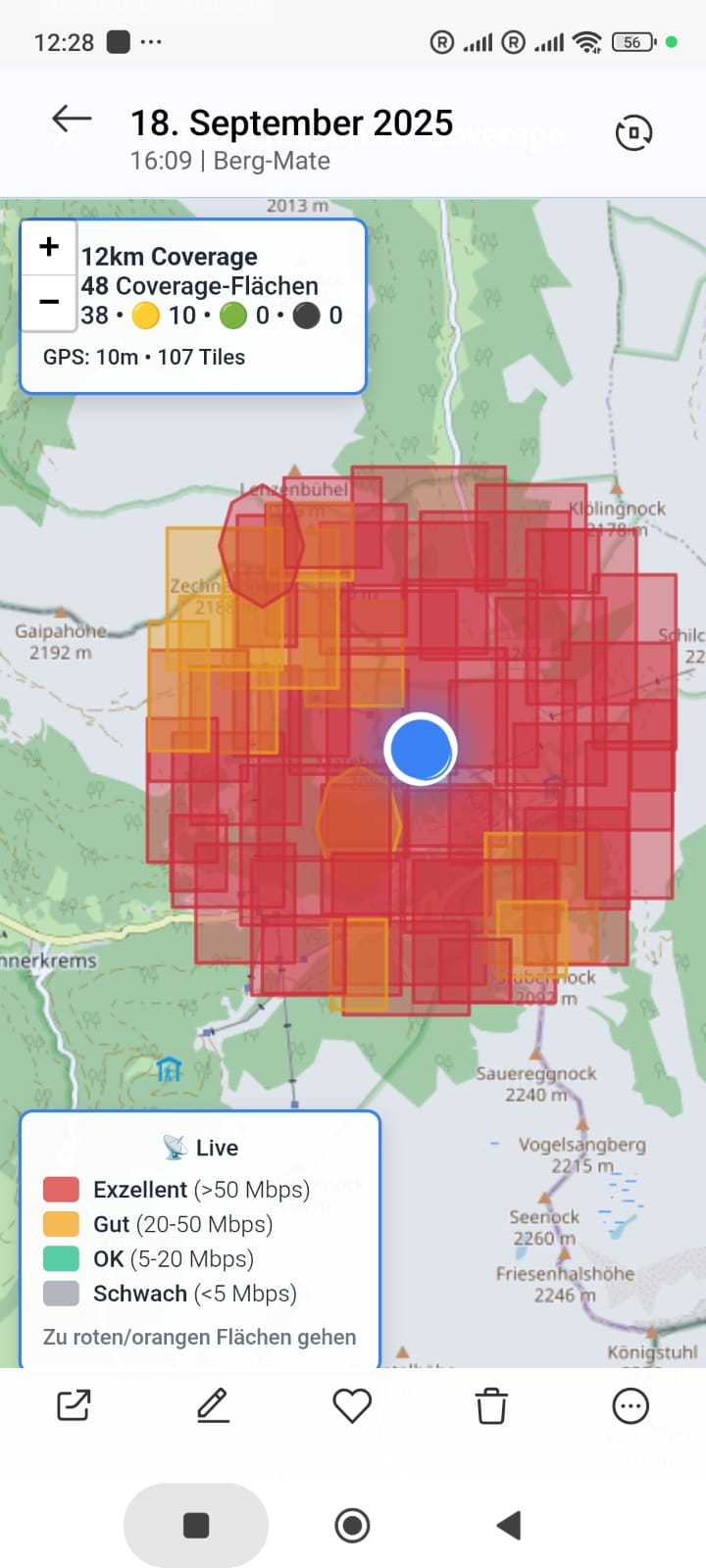 Ein besonders nützliches Tool: die Mobilfunk-Karte. Sie zeigt im Gelände, wo der nächste Netzempfang möglich ist – und unterscheidet zwischen 2G, 3G, 4G und 5G. Wer bei schlechtem Empfang seine Tour verlängern will oder im Notfall Hilfe rufen muss, weiß mit einem Blick, wohin er gehen muss.