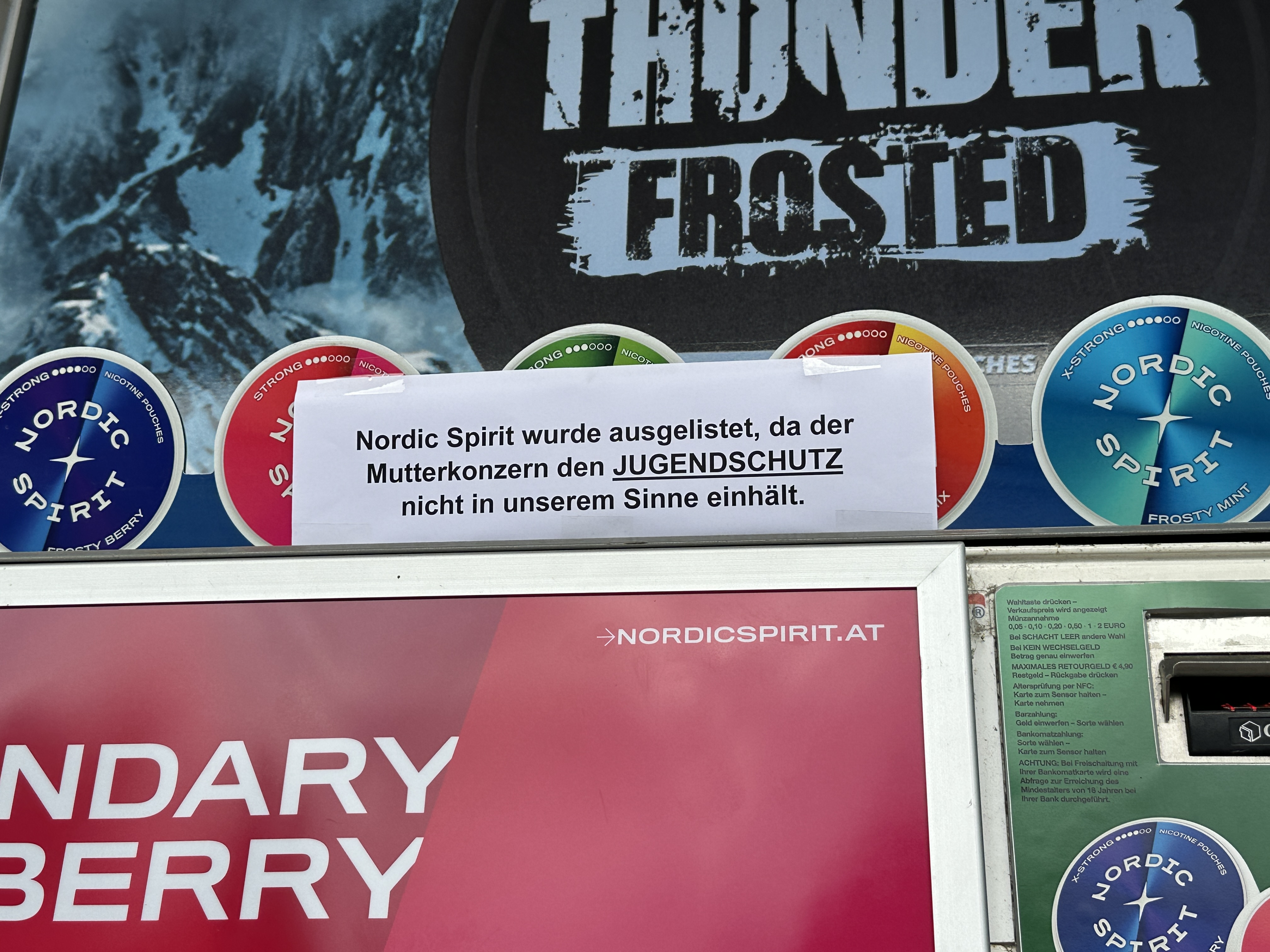 In seiner eigenen Trafik hat Hafner, wie im Vorfeld gegenüber VOL.AT angekündigt, bereits reagiert: Produkte von "Nordic Spirit" aus dem Sortiment genommen – eben dem Anbieter, der einem VOL.AT-Leser durch die beworbenen Gratispakete auffiel. "Bitte, Industrie, lasst solche Sachen", meint er. "Ich fühle mich in der Verpflichtung, wenn die Industrie den Jugendschutz nicht in unserem Sinne erfüllen kann", erklärt er den Schritt. Kundenreaktionen auf die Auslistung habe es bislang keine gegeben, da es sich um Produkte handle, die im Markt noch nicht so stark vertreten seien.