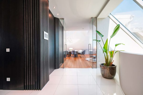 Das Penthouse “schreit nicht”, findet Dominik Reiter, Managing Director Sales bei CROWND Estates. Seine drei Highlights lauten “Blick”, “Terrasse auf Wohnebene” sowie “Bequemlichkeit (es ist vollmöbliert und sofort einzugsbereit)”. “Du fährst mit dem Auto in den ersten Bezirk, biegst in die Garage ein, fährst mit dem Lift hinauf und bist eigentlich in einem total ruhigen Refugium.” Stellt sich nur die Frage, warum der Besitzer überhaupt verkaufen will. “Der Eigentümer hat gesagt, er bleibt in dem Bundesland, in dem er wohnt. Dort hat er ein schönes Haus und somit wird das Penthouse nicht als Hauptwohnsitz gebraucht. ‘Besitz belastet auch’, sagt er selbst und das hängt ihm im Hinterkopf”, erklärt Reiter.