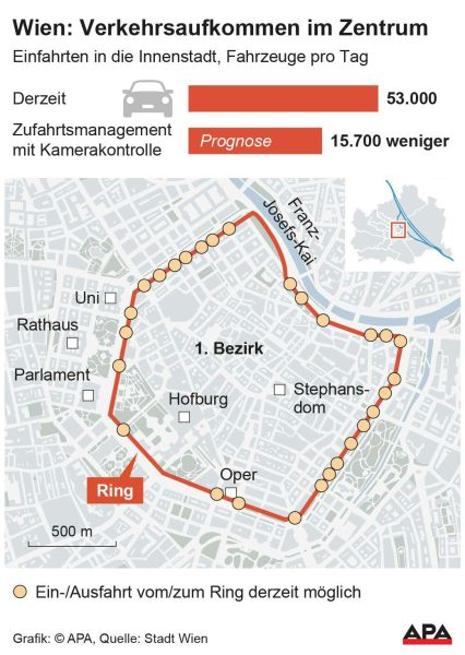 Eine Machbarkeitsstudie der Stadt und des 1. Bezirks habe bereits vor drei Jahren die enorme Verkehrsentlastung allein in der Bundeshauptstadt aufgezeigt, hob sie hervor. Bis zu 15.700 Einfahrten in die City könnten mit dem Wiener Modell täglich verhindert werden. Ein Viertel weniger Autos würden auf der Oberfläche parken. Der Datenschutz, so beteuerte die Stadträtin, sei nie in Gefahr gewesen.
