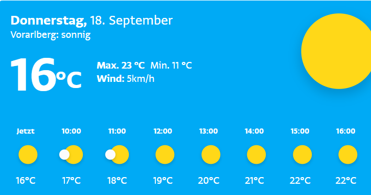In Vorarlberg kündigt sich ein spätsommerliches Intermezzo an. Bis Sonntag bleibt das Wetter meist wolkenlos, föhnig und ungewöhnlich warm. Der Wochenbeginn bringt dann eine markante Abkühlung.