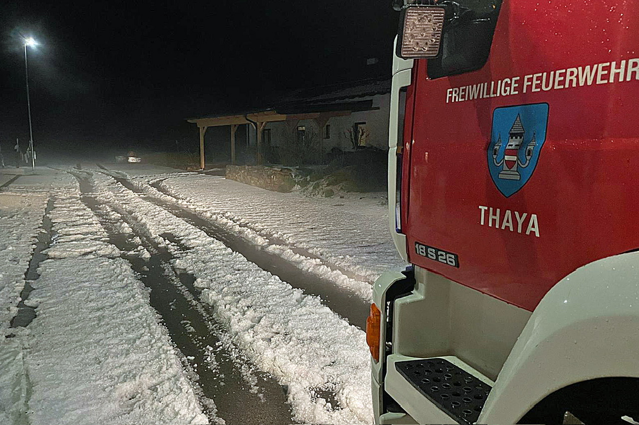 Die heftige Unwetterfront war kurz nach 19.00 Uhr über den Waldviertler Bezirk hinweggezogen. In Waidhofen a.d. Thaya, Waidhofen a.d. Thaya-Land, Thaya, Kautzen, Dobersberg sowie Raabs a.d. Thaya wurden die Feuerwehren zu überfluteten Kellern, verschlammten Straßen und herausgedrückten Kanaldeckeln gerufen.