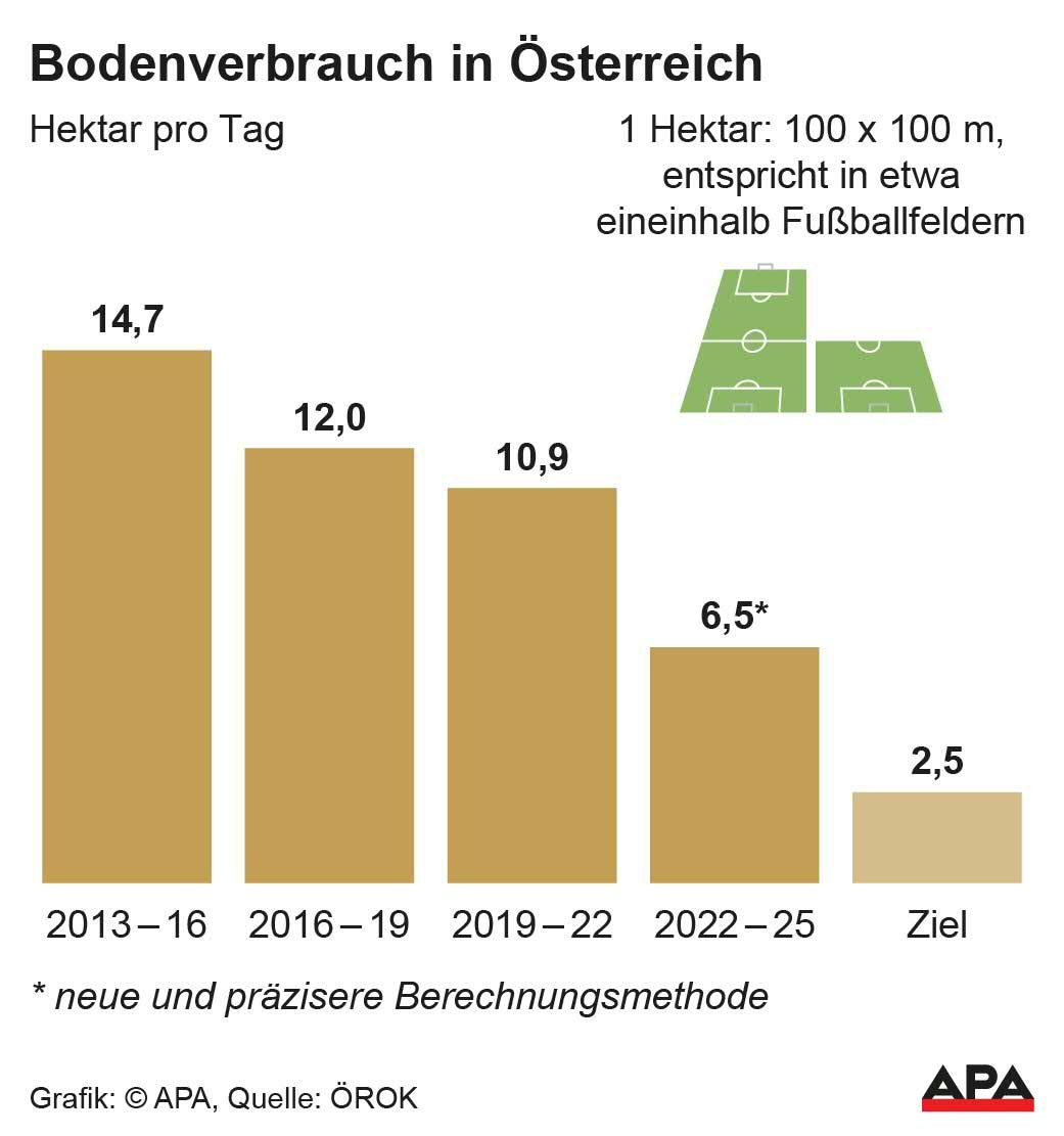 Der tägliche Bodenverbrauch in Österreich ist in den letzten drei Jahren gesunken, erklärte Landwirtschaftsminister Norbert Totschnig. Von 2023 bis 2025 wurden durchschnittlich 6,5 Hektar pro Tag beansprucht, im Vergleich zu 10,9 Hektar zwischen 2019 und 2022. Hauptsächlich betroffen sind Siedlungs- und Verkehrsflächen.