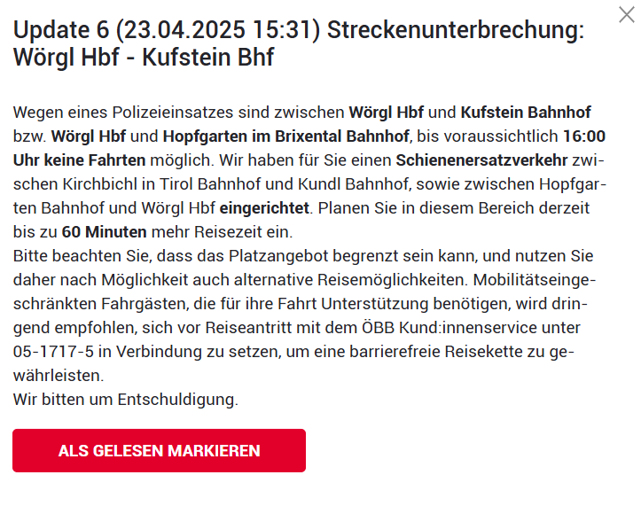 Bombenalarm: Zugsperre und Evakuierung wegen möglichem Kriegsrelikt in Tirol