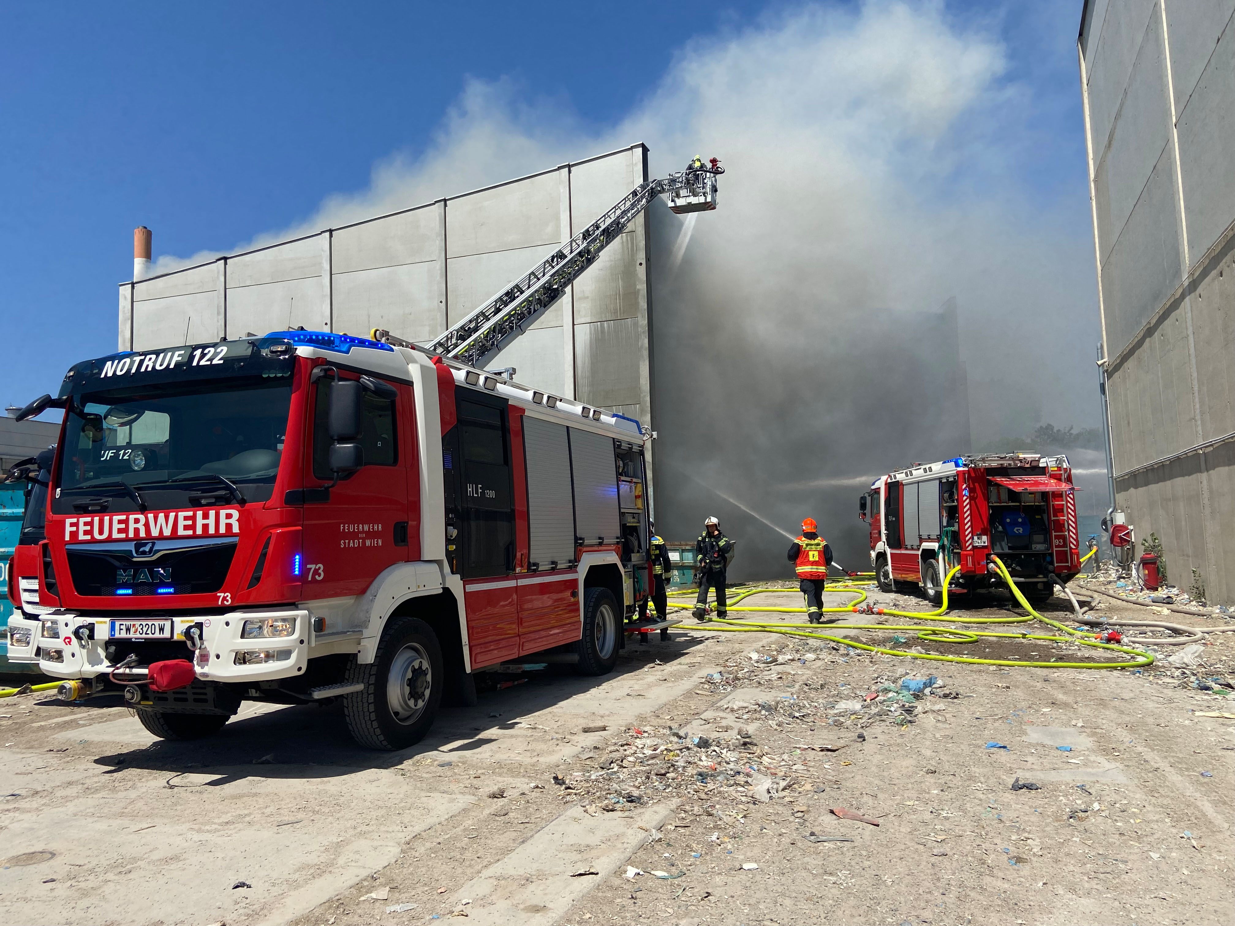 Von der Berufsfeuerwehr wurde bei dem Brand in dem Entsorgungsbetrieb in Wien-Simmering Alarmstufe zwei ausgerufen.