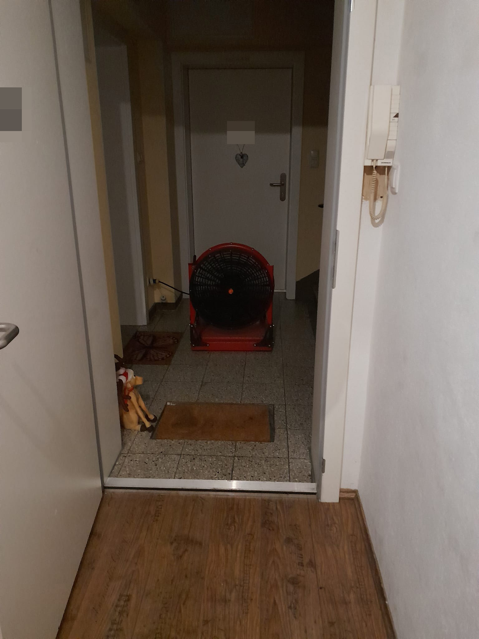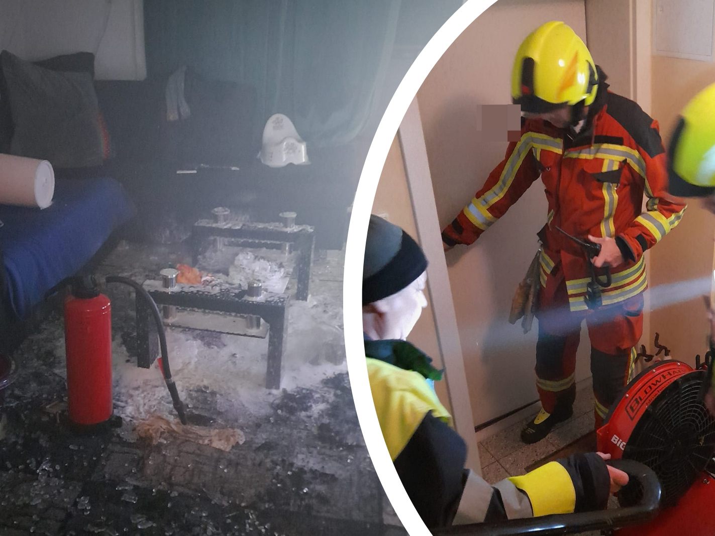 Die 26-jährige Mieterin wurde durch den akustischen Feuermelder wach und konnte Rauch und Feuer im Wohnzimmer feststellen. Die junge Frau versuchte dann mittels eines im Treppenhaus befindlichen Feuerlöschers, den Brand zu löschen. Als ihr dies nicht gelang, begab sie sich mit ihrem zweijährigen Sohn ins Freie.
