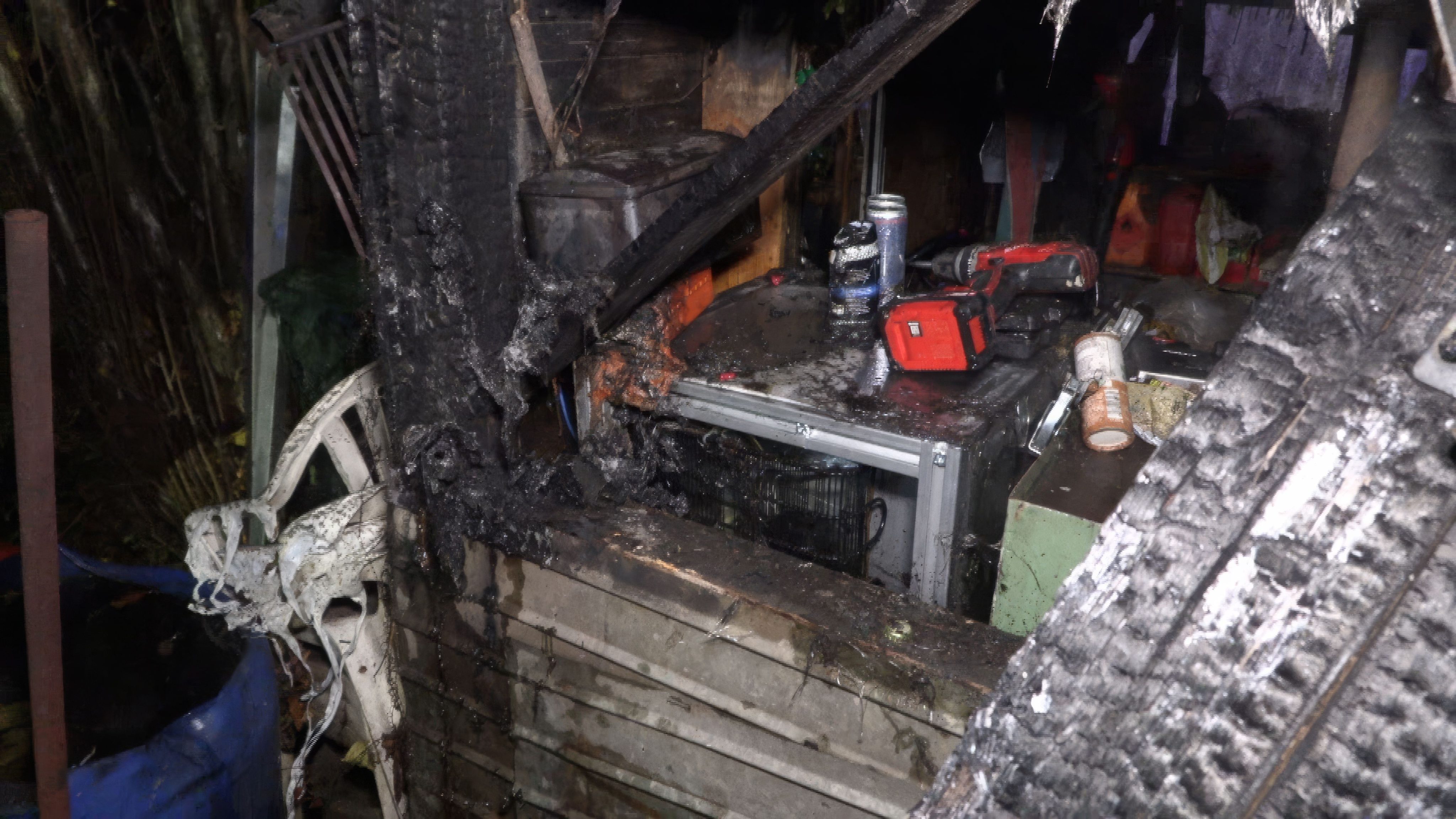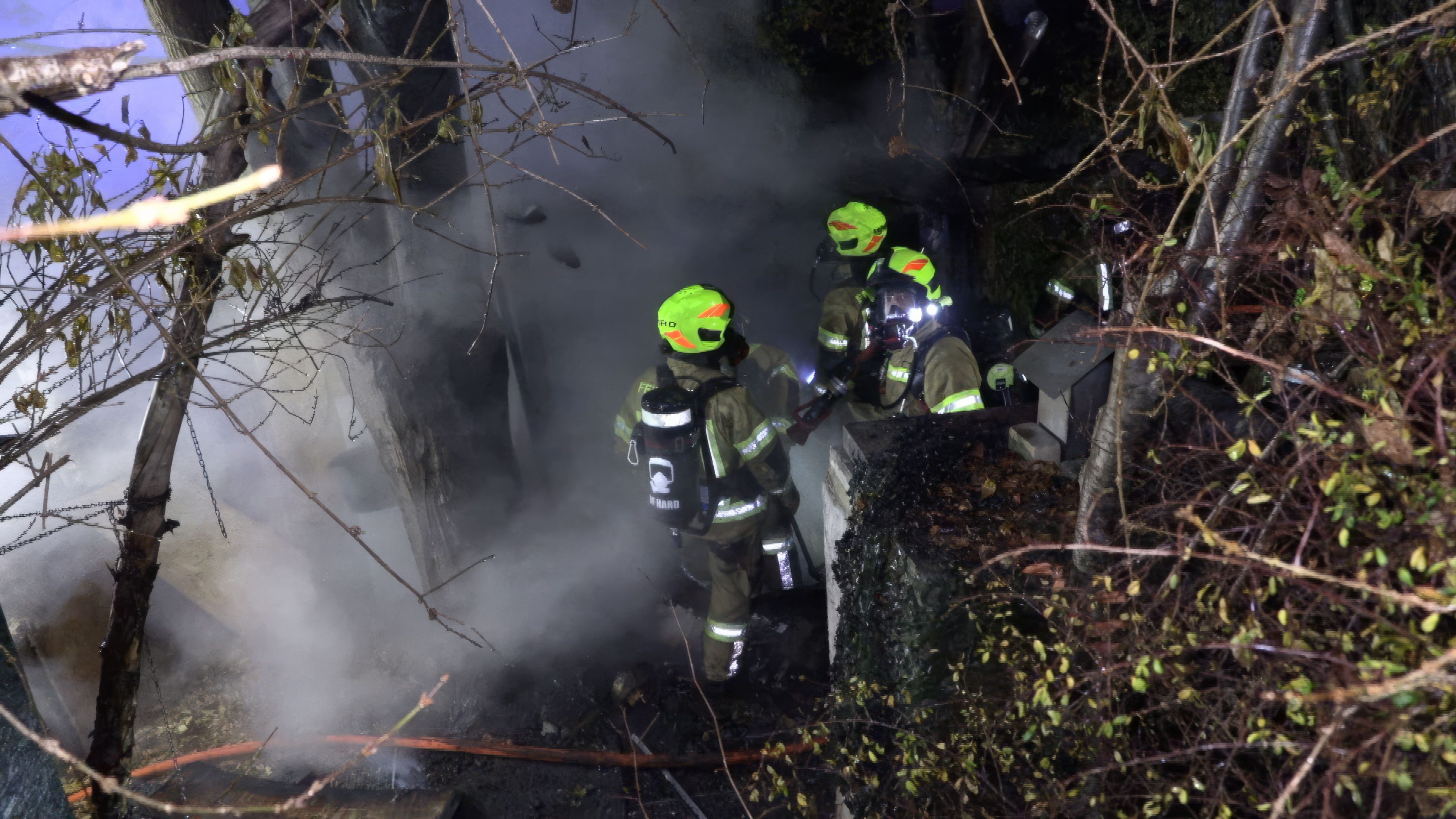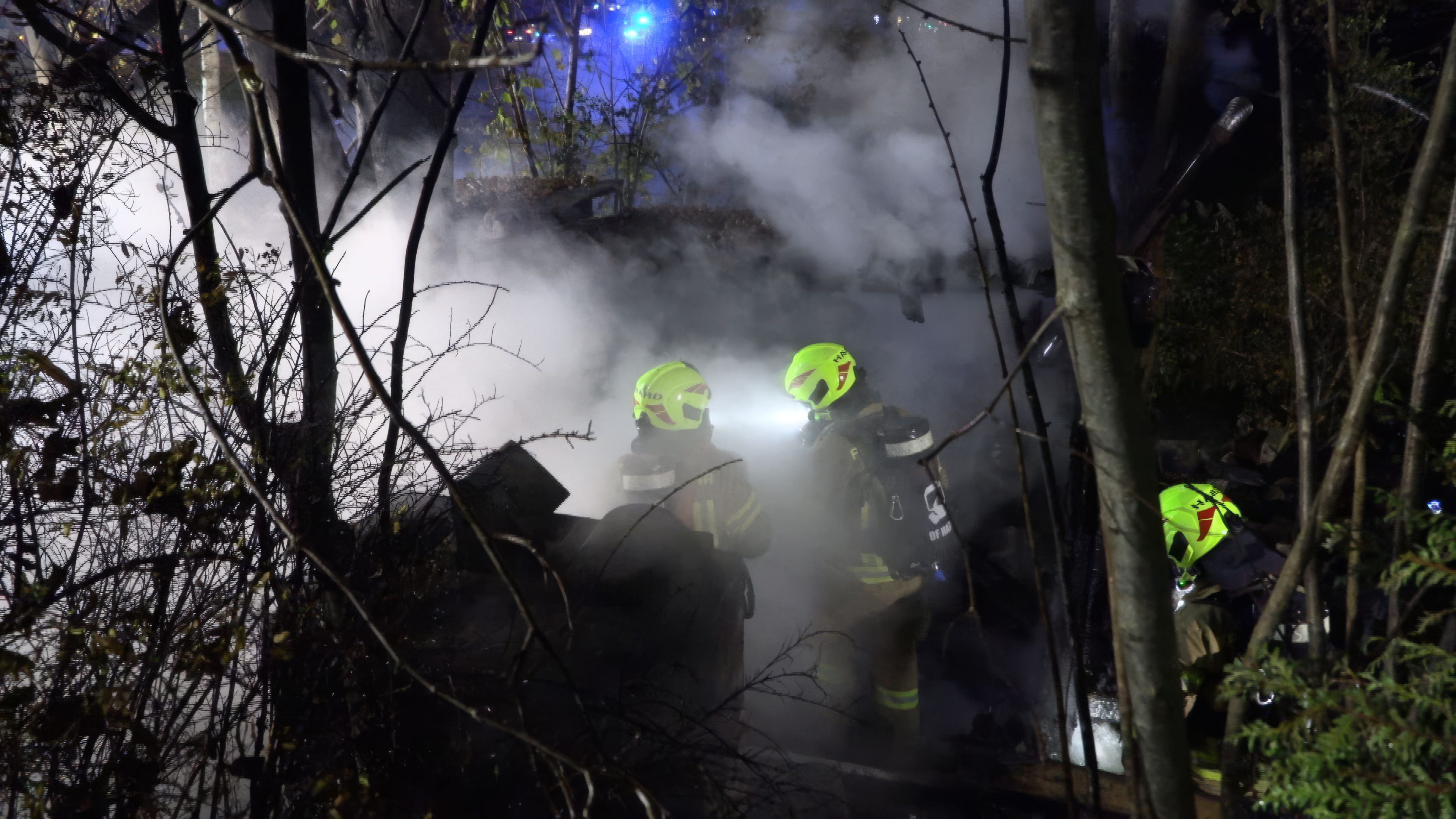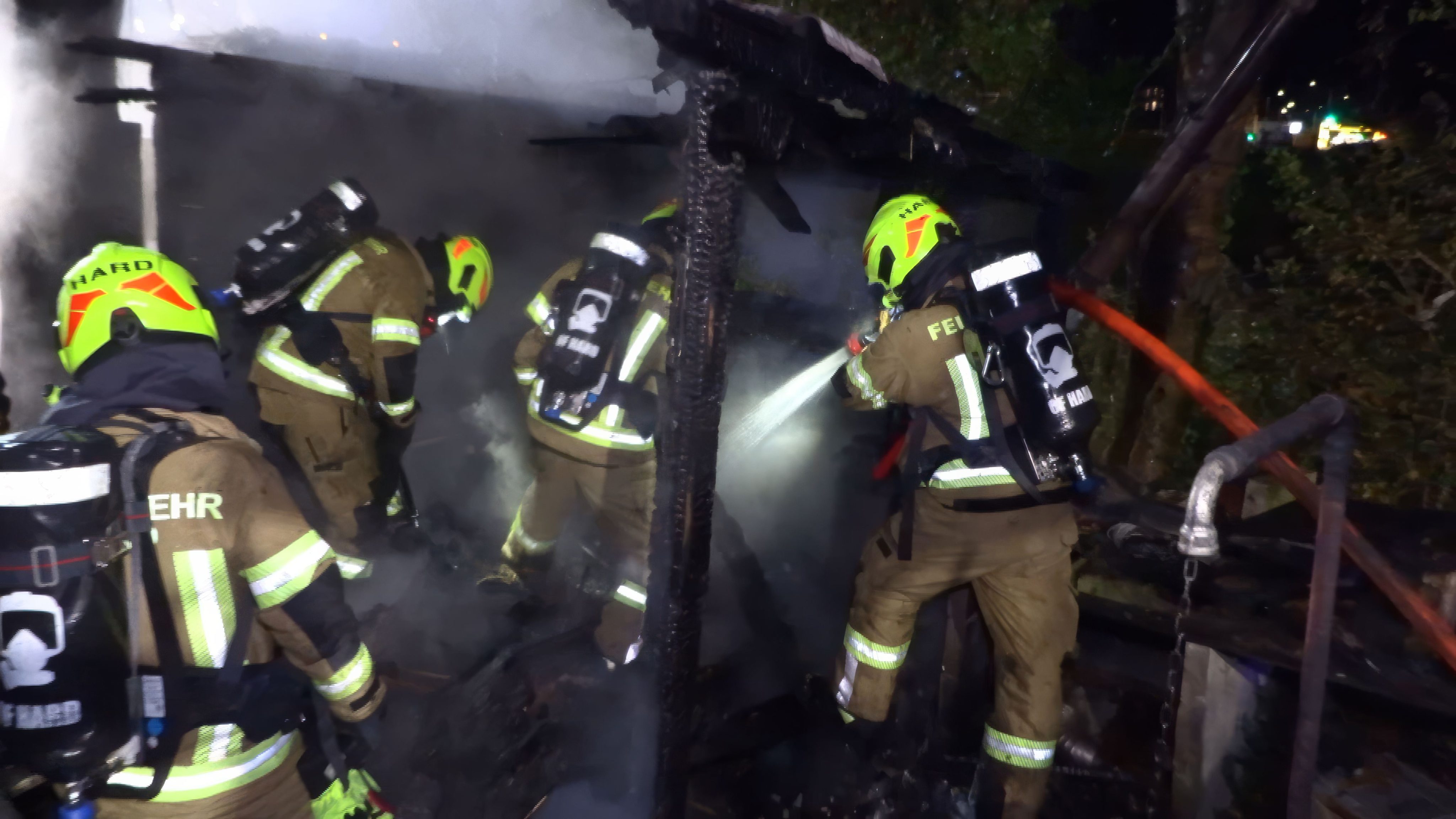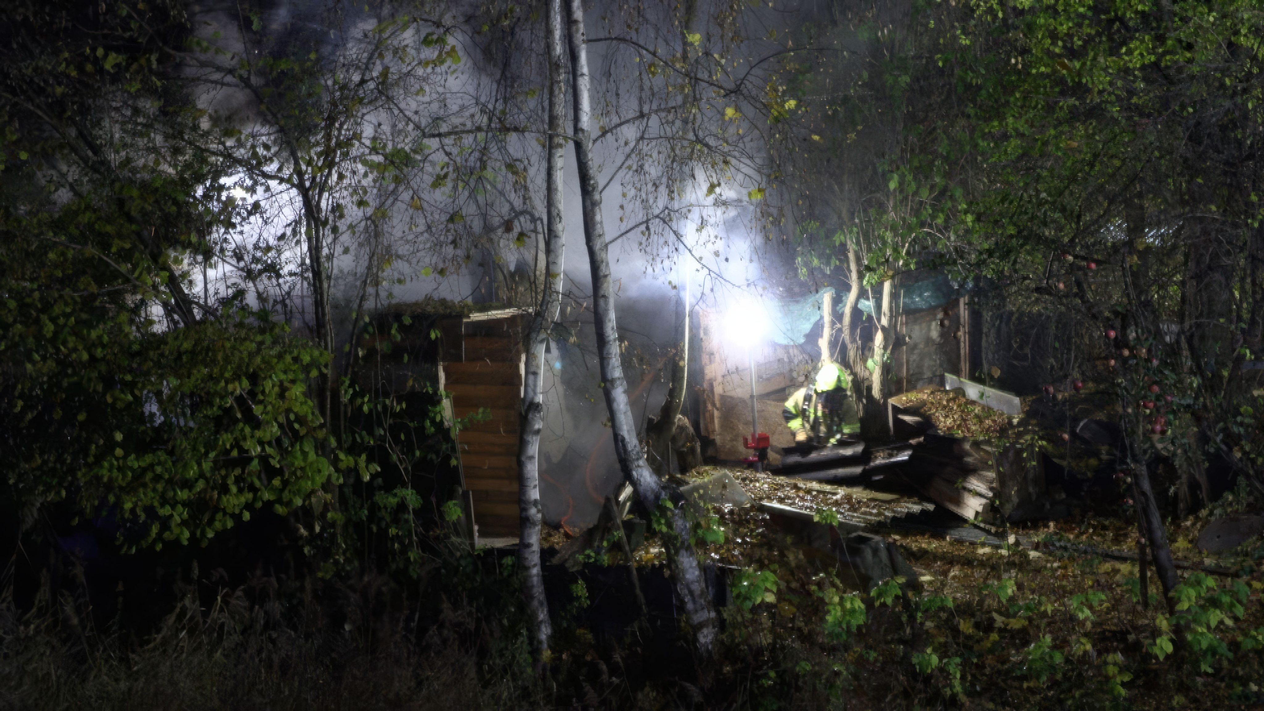 Beim Eintreffen der Feuerwehr hatten die Flammen bereits weite Teile der Gartenhütte erfasst. Die Arbeiten gestalteten sich aufgrund der engen, stark bewachsenen Umgebung sowie der intensiven Hitzeentwicklung als herausfordernd.