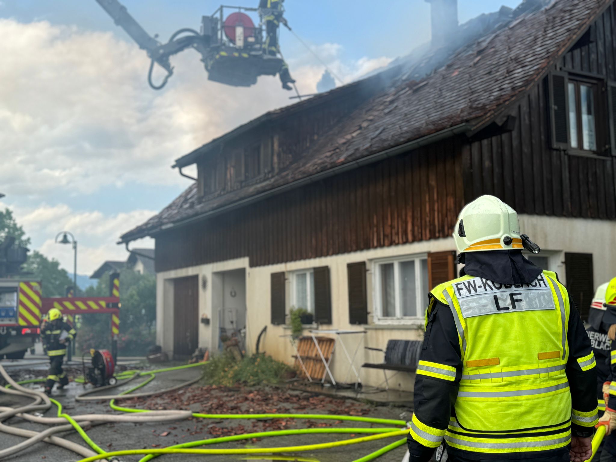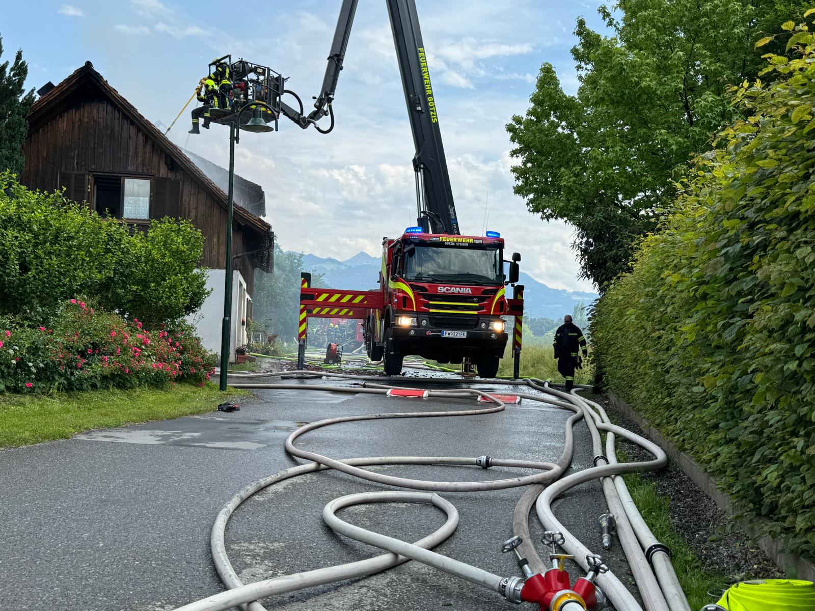 Dachstuhlbrand in Koblach: Die ersten Bilder + Video