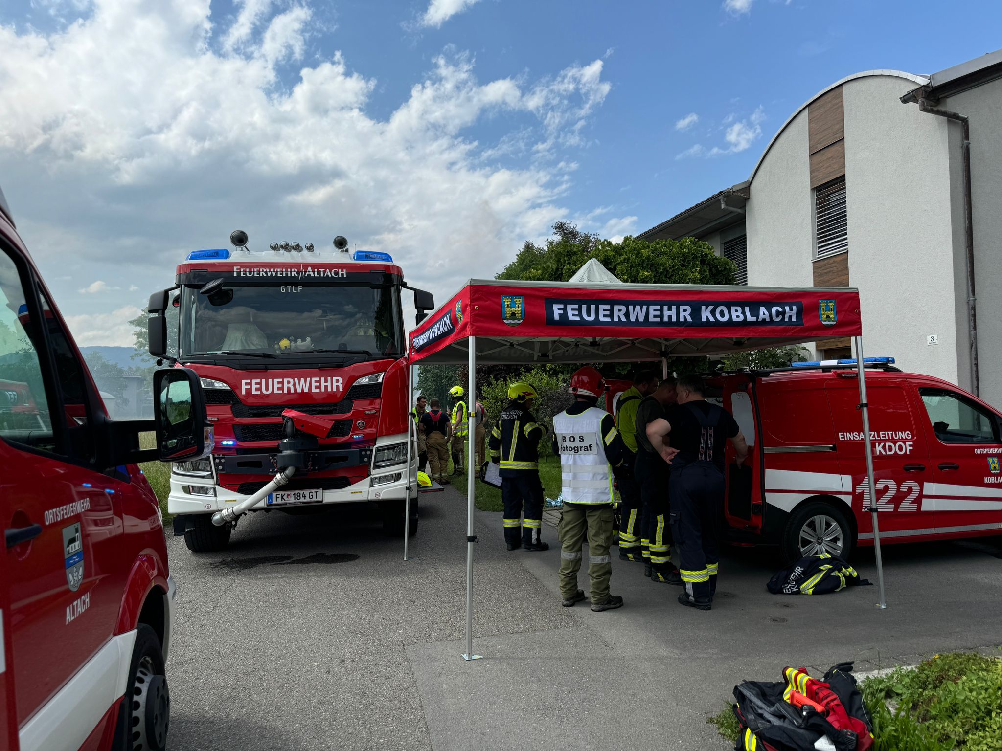 Einsatzkräfte Feuerwehr Koblach, Feuerwehr Götzis, Feuerwehr Altach, Feuerwehr Mäder, Feuerwehr Hohenems mit insgesamt 166 Feuerwehrkräfte mit 13 Fahrzeugen. PI Götzis (1 Streife, 2 Beamte), PI Rankweil (1 Steife, 2 Beamte) Libelle; Rettungsdienst: 2 Rettungswagen, 1 Notarzteinsatzfahrzeug, 1 Fahrzeug der Schnelleinsatzgruppe des Roten Kreuzes, 1 Notarzt (insgesamt 11 Mann).