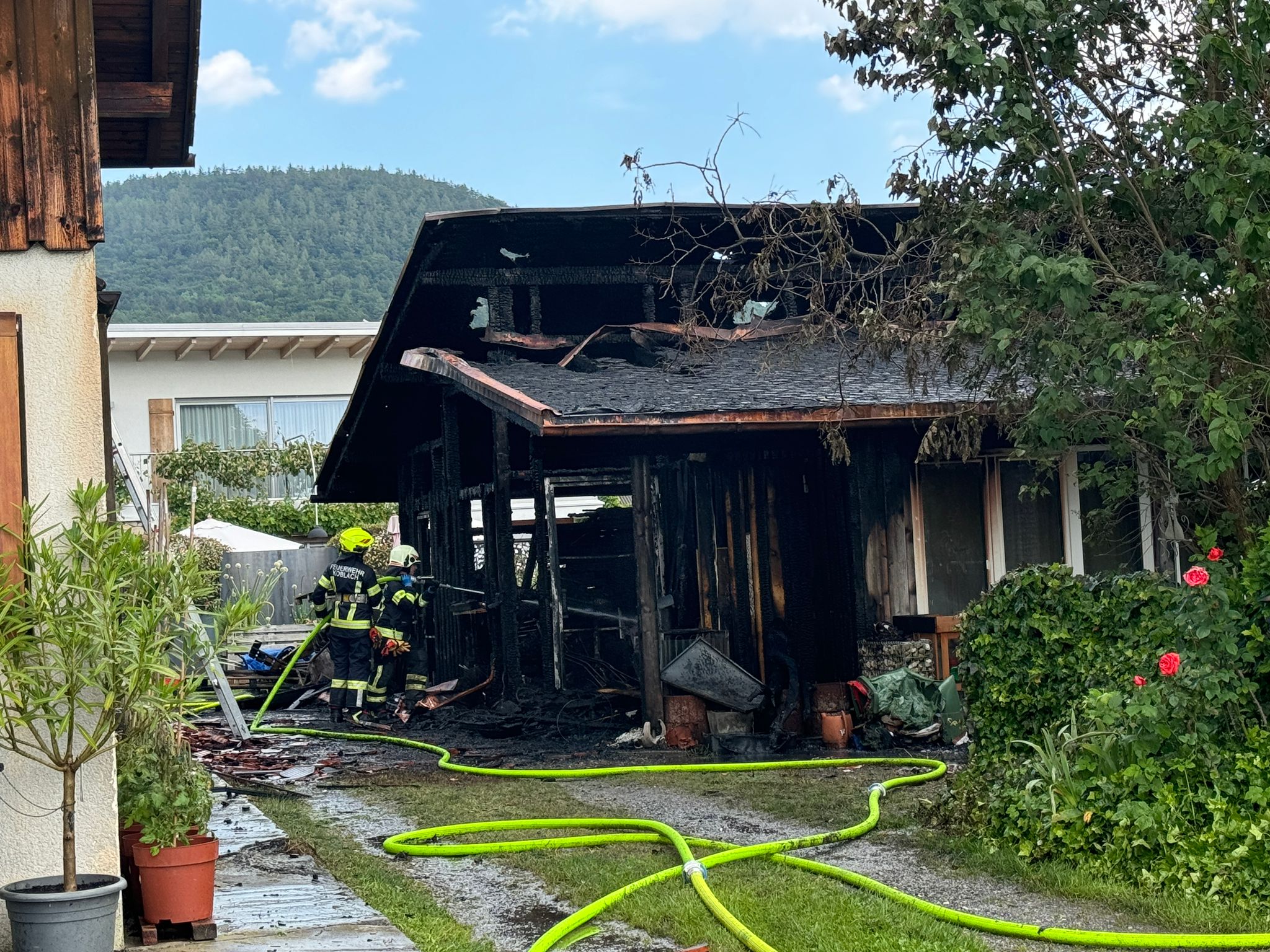 Am Freitag (7. Juni 2024) um 13:42 Uhr wurde über die Rettungs- und Feuerwehrleitstelle (RFL) eine Brandentwicklung in angrenzenden Schopf eines Mehrfamilienhauses in Koblach gemeldet. Die eintreffende Streife konnte vor Ort eine starke Rauchentwicklung aus dem Schopf feststellen.
