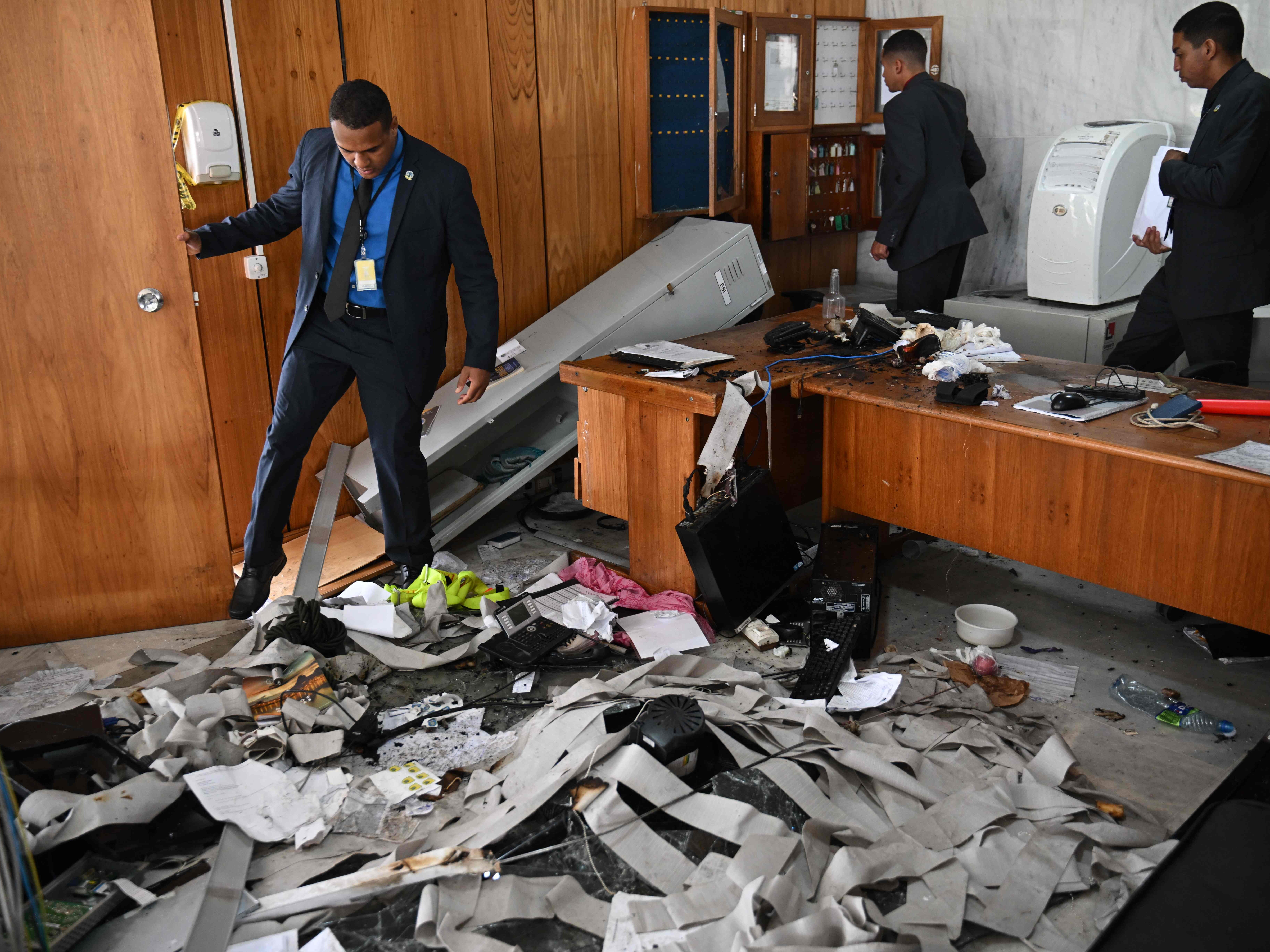 Tausende Bolsonaro-Fans hatten zuvor das Regierungsviertel gestürmt. Die Polizei wirkte völlig überrumpelt. Schnell rissen die Demonstranten die Straßensperren ein und drängten die Beamten zurück. Bald standen sie auf dem Dach des Kongresses und schwenkten brasilianische Nationalflaggen. Kurz darauf drangen sie auch in den Obersten Gerichtshof und den Regierungssitz ein.