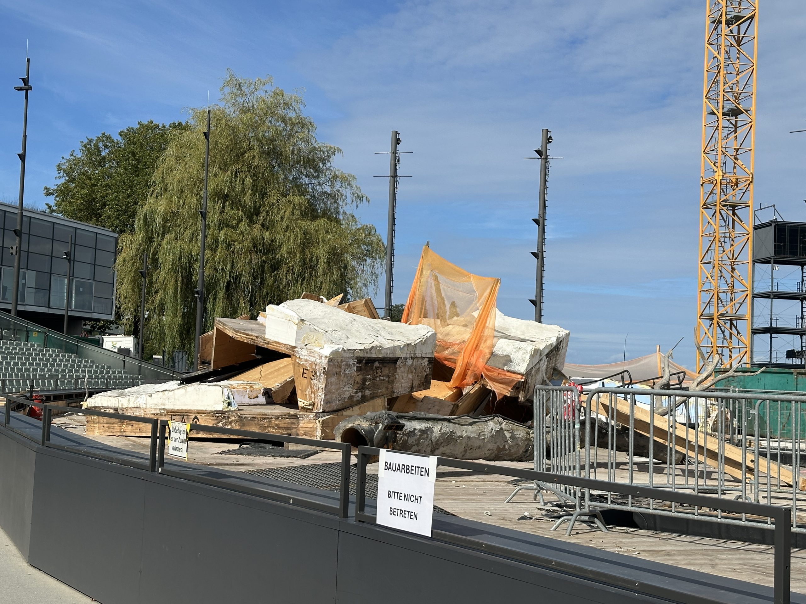 Der Rückbau begann direkt nach der letzten Vorstellung am 17. August. Seither wird Stück für Stück abgebaut – zunächst Licht- und Tontechnik, dann die großen Kulissenteile.