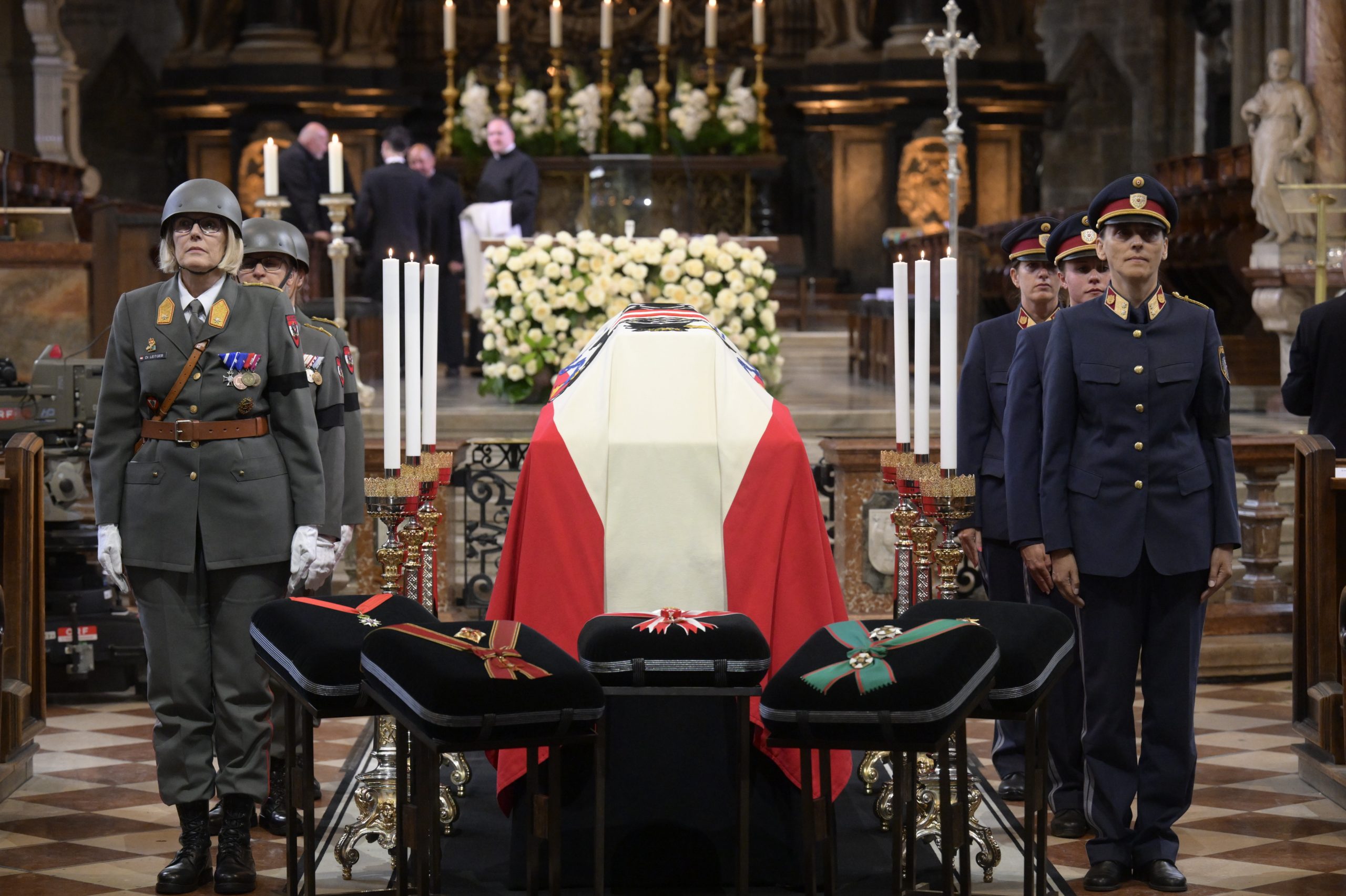 Der Sarg war in der Früh um 6.45 Uhr in den Stephansdom gebracht und aufgebahrt worden. Hunderte Menschen nutzten anschließend die Gelegenheit, um Abschied zu nehmen und sich in die aufgelegten Kondolenzbücher einzutragen.