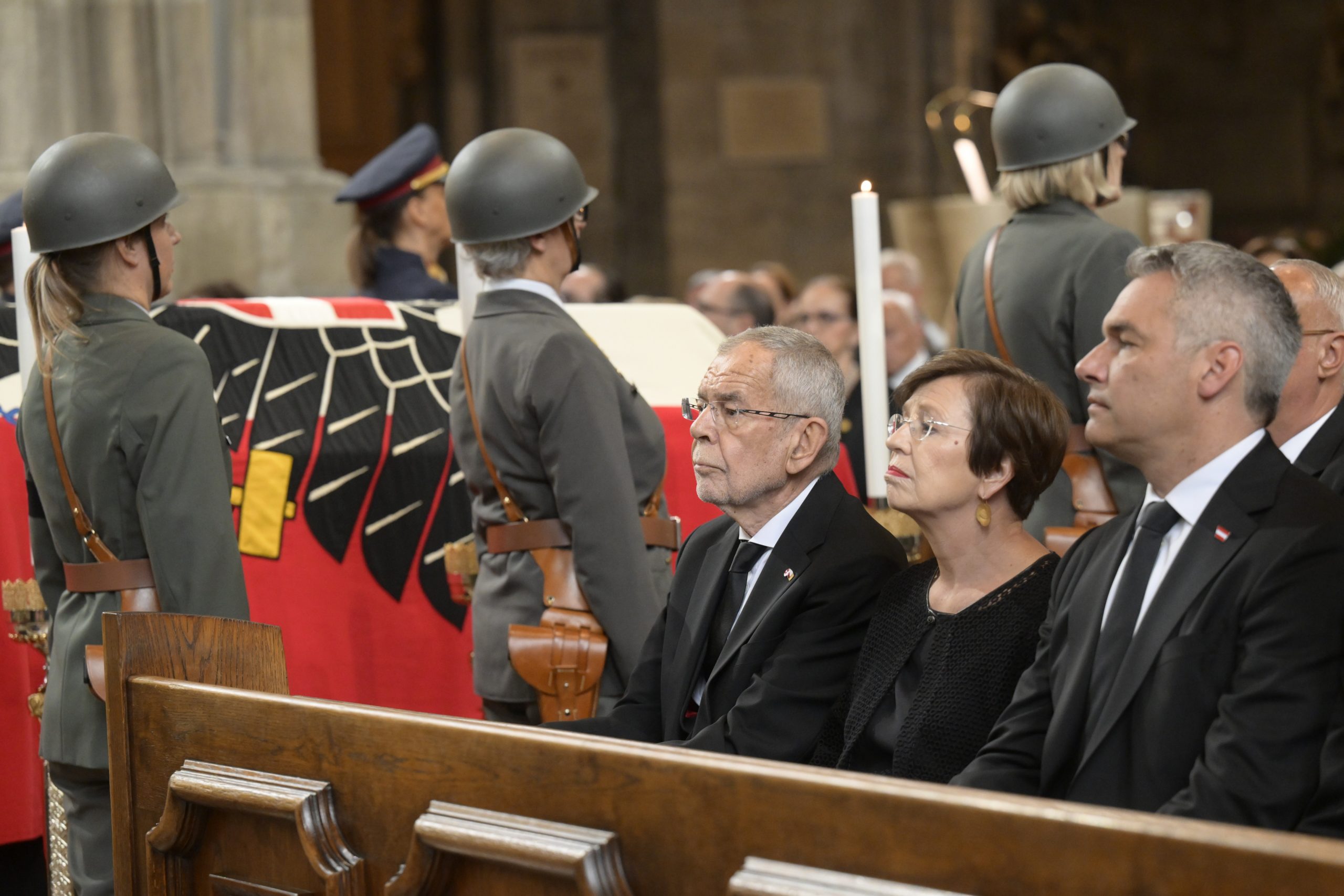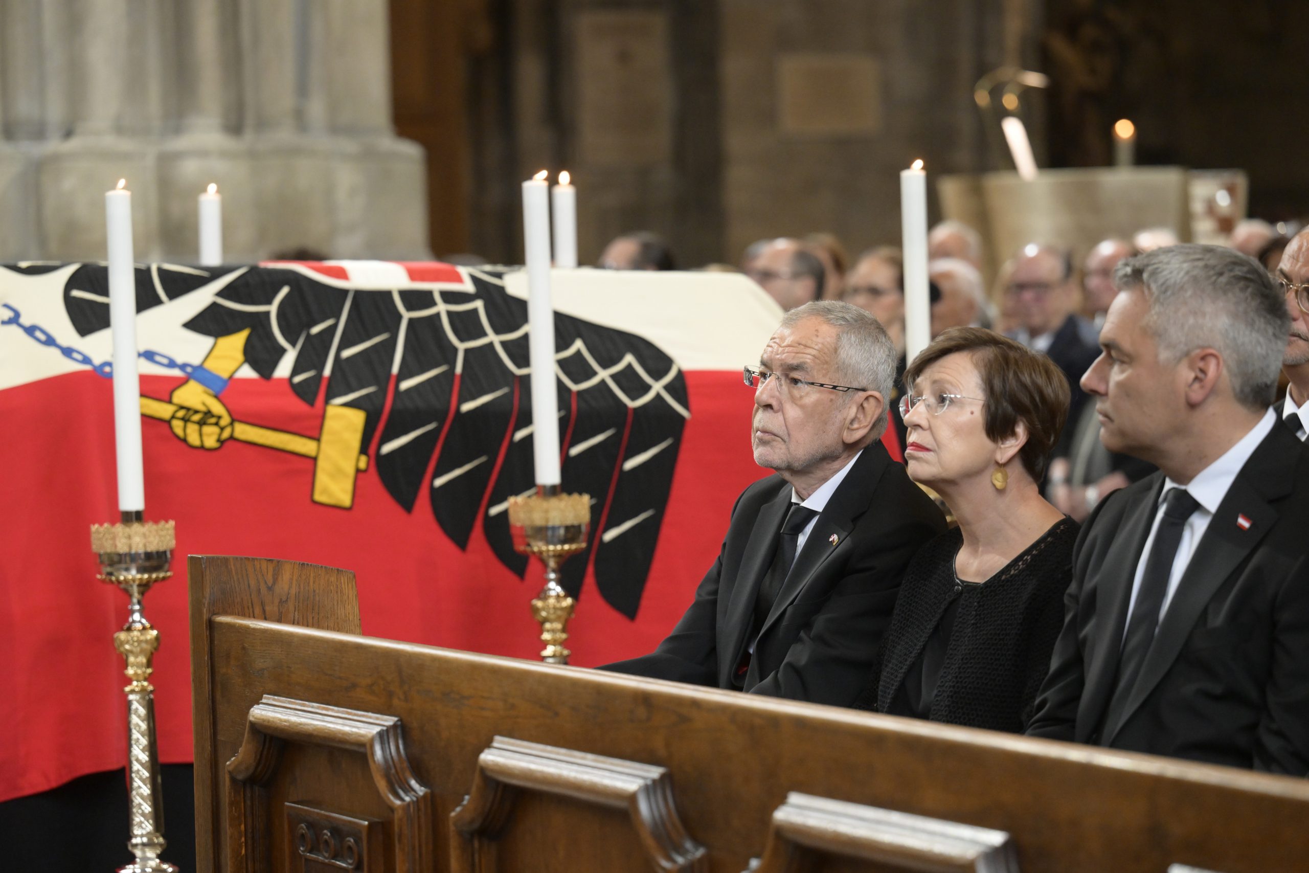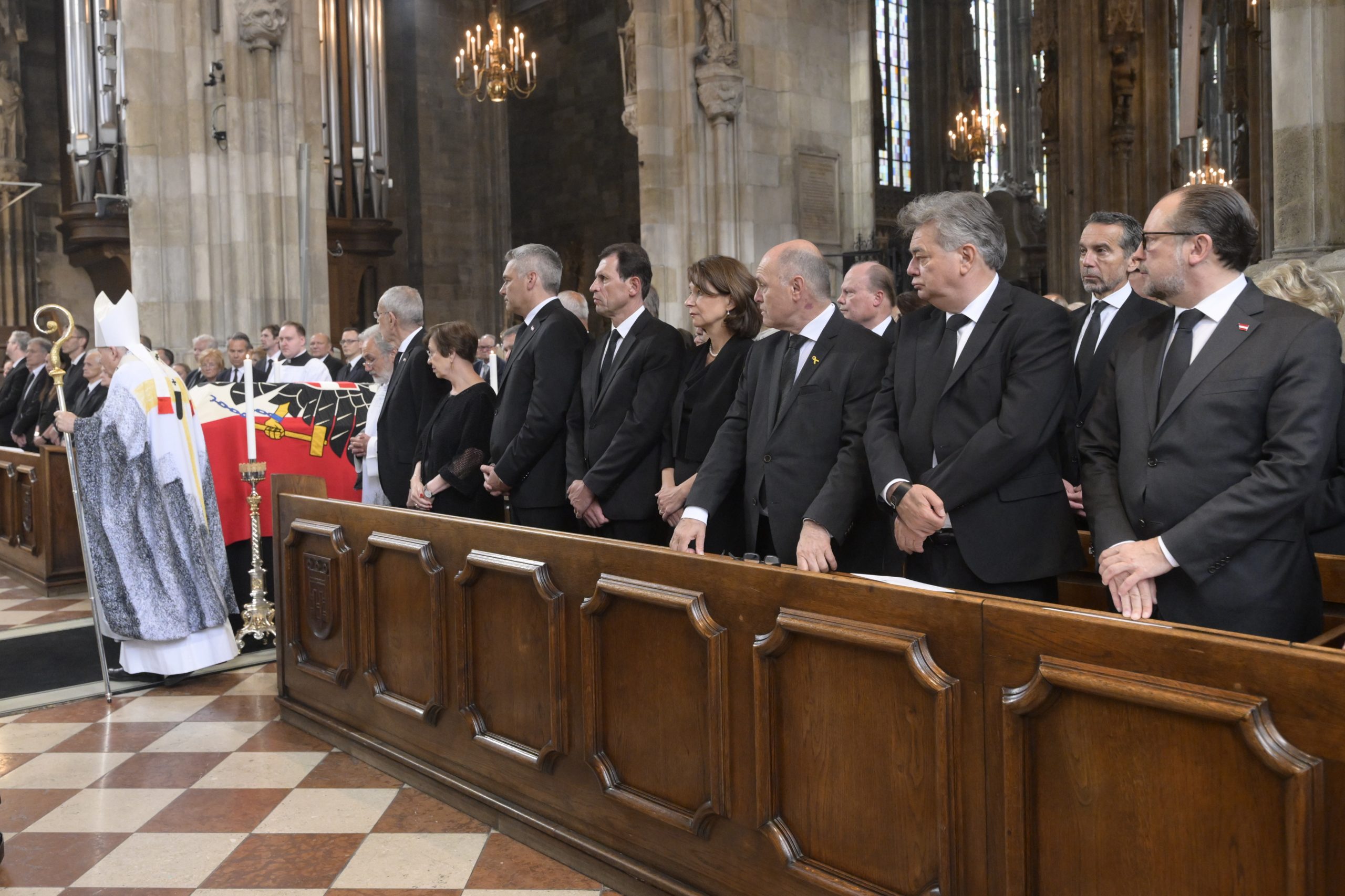 In den Reihen des Doms hatte die Bundesregierung ebenso Platz genommen wie z.B. Alt-Bundespräsident Heinz Fischer, die ehemaligen Kanzler Wolfgang Schüssel (ÖVP) und Christian Kern (SPÖ), Nationalratspräsident Wolfgang Sobotka (ÖVP), Wiens Bürgermeister Michael Ludwig (SPÖ), Niederösterreichs Landeshauptfrau Johanna Mikl-Leitner (ÖVP), Spitzenpolitiker aller Parteien sowie Prominenz aus der Justiz.