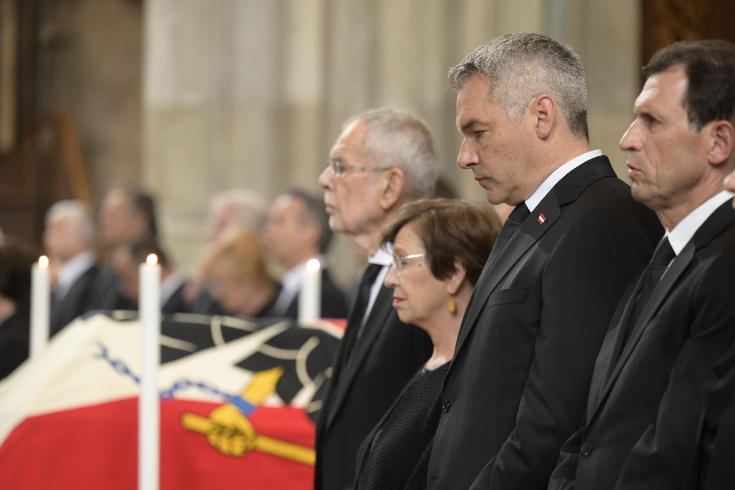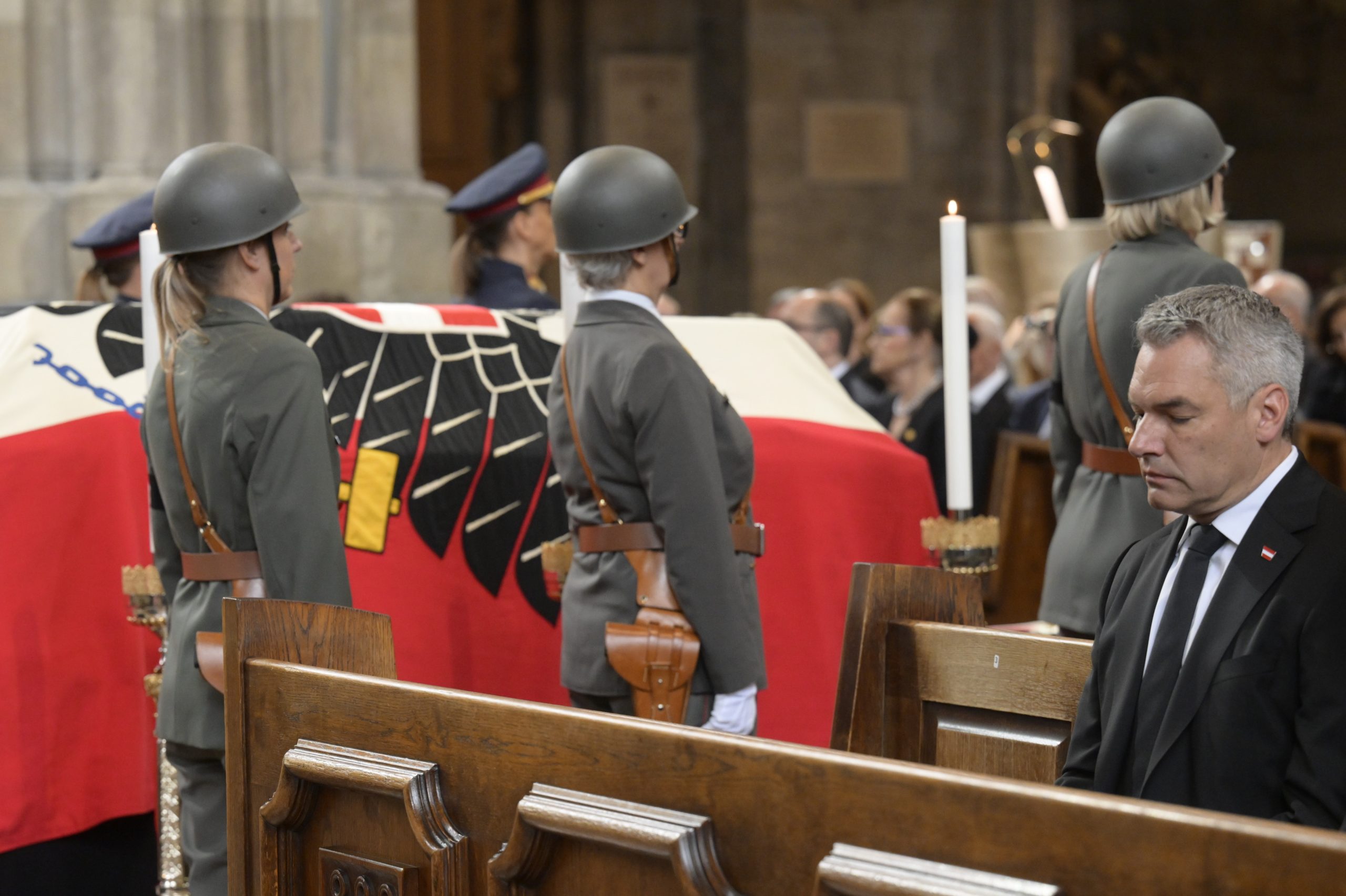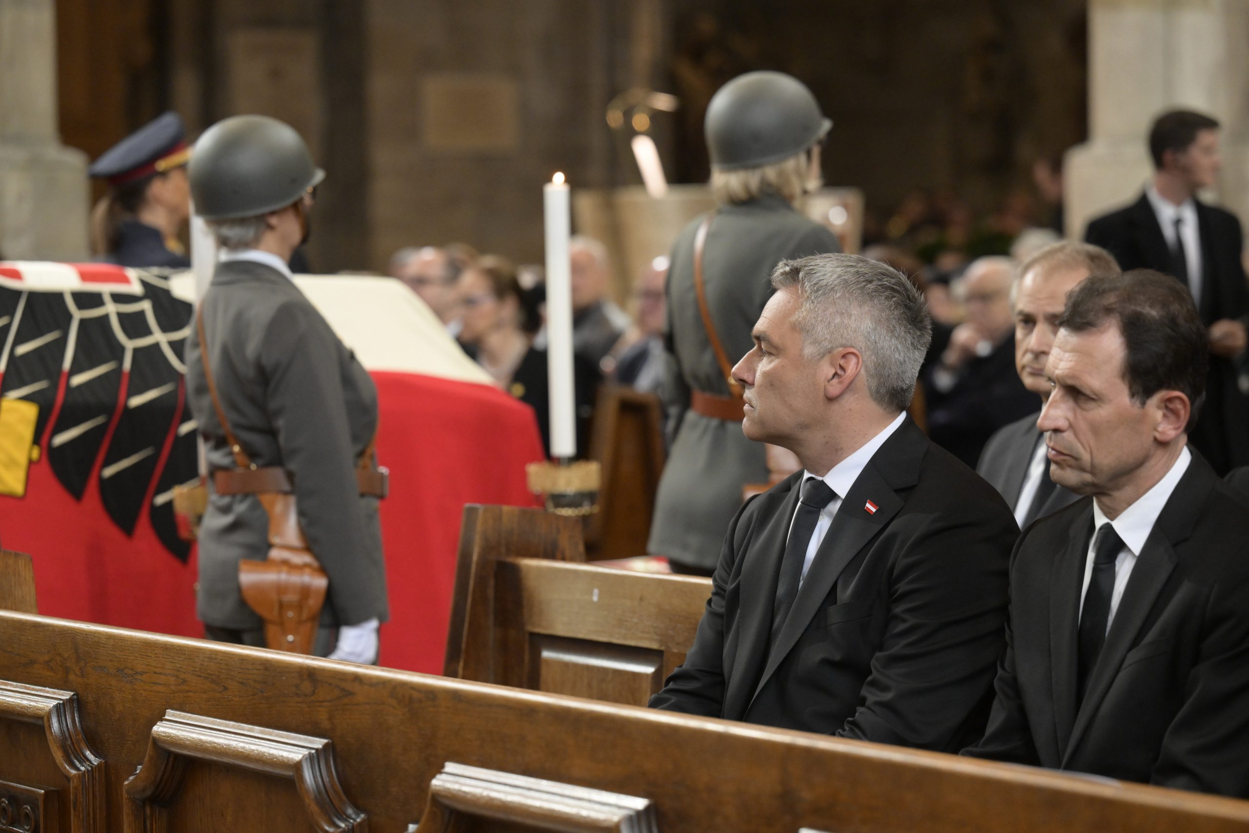In den Reihen des Doms hatte die Bundesregierung ebenso Platz genommen wie z.B. Alt-Bundespräsident Heinz Fischer, die ehemaligen Kanzler Wolfgang Schüssel (ÖVP) und Christian Kern (SPÖ), Nationalratspräsident Wolfgang Sobotka (ÖVP), Wiens Bürgermeister Michael Ludwig (SPÖ), Niederösterreichs Landeshauptfrau Johanna Mikl-Leitner (ÖVP), Spitzenpolitiker aller Parteien sowie Prominenz aus der Justiz.
