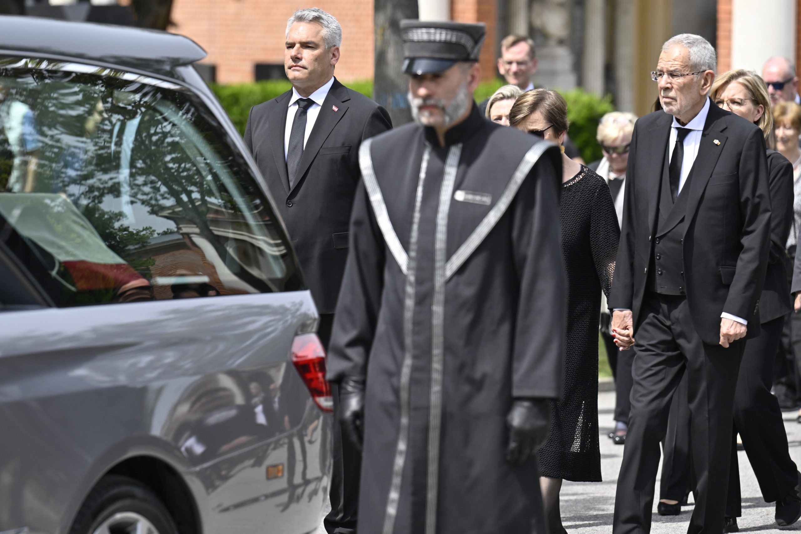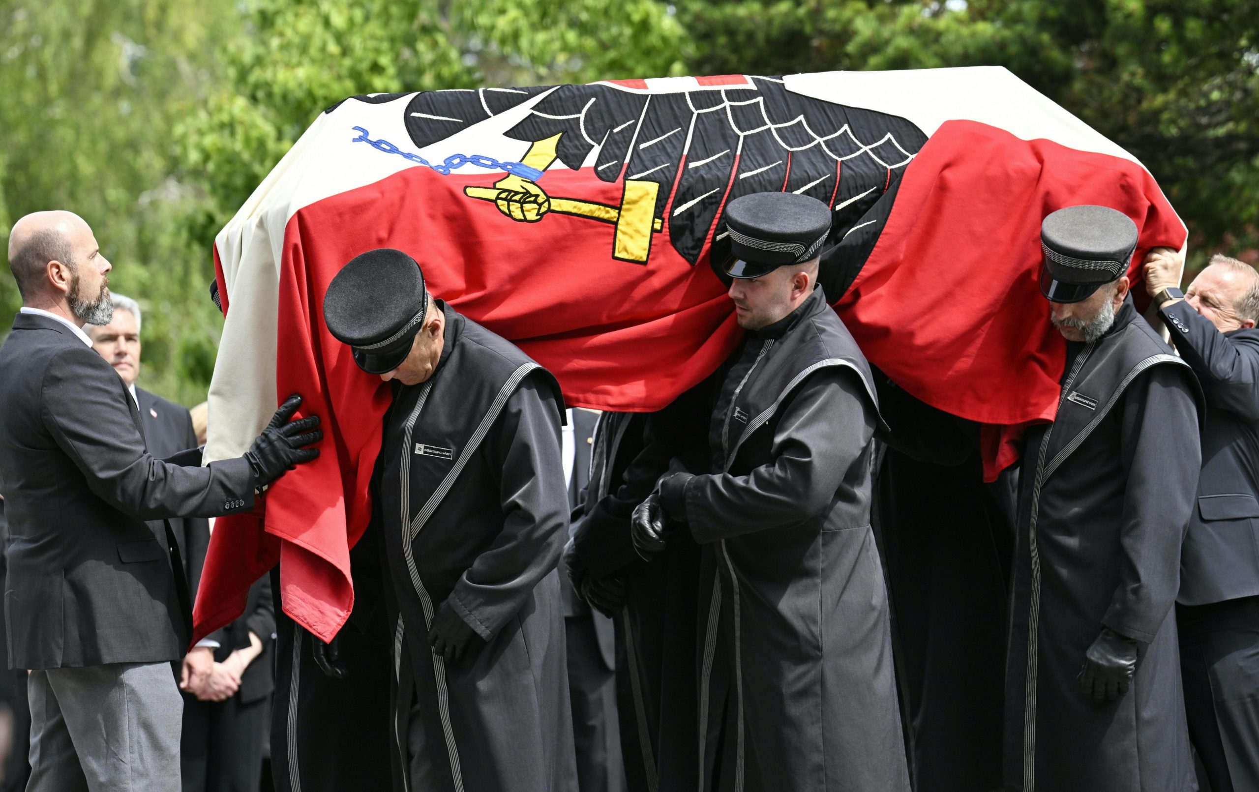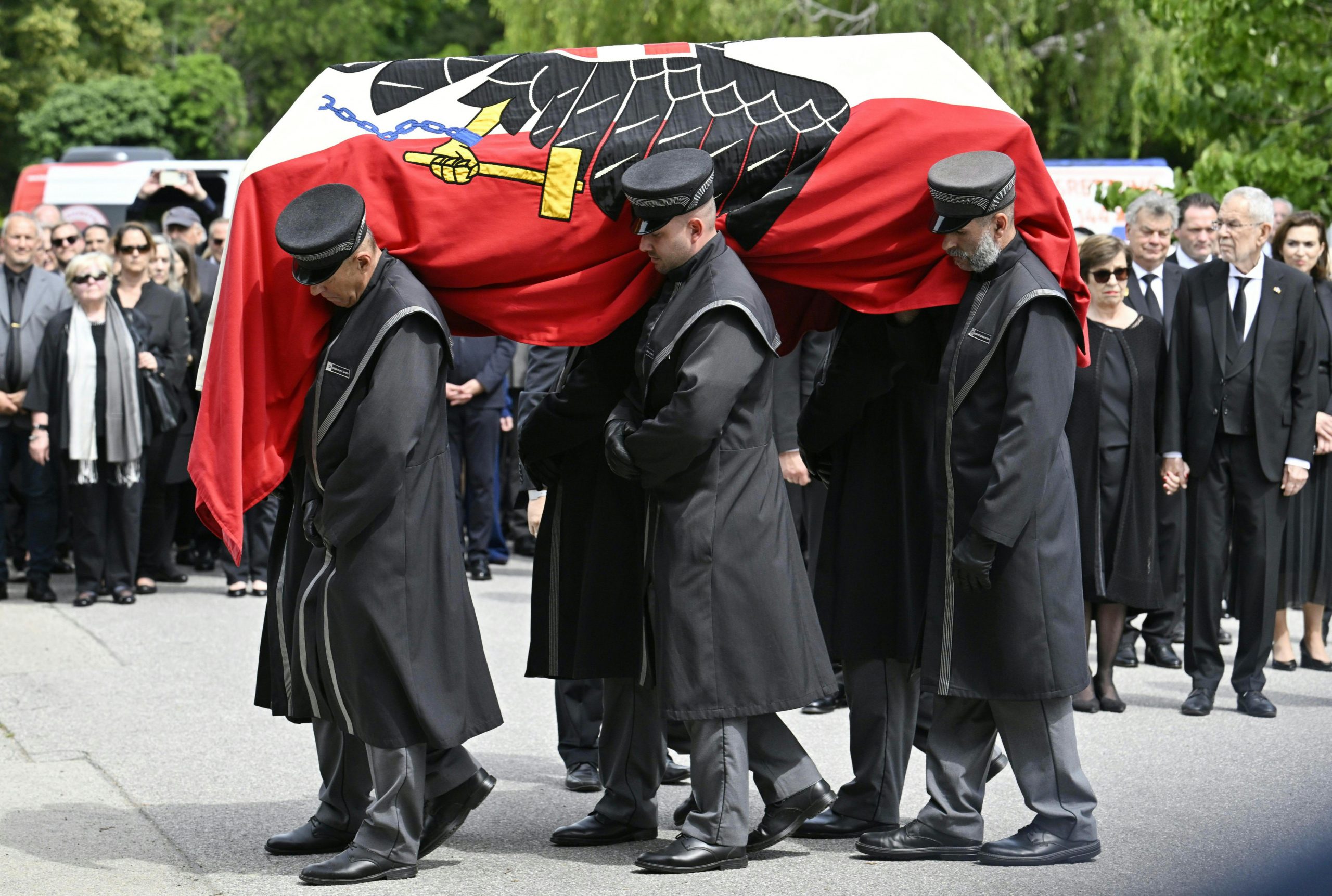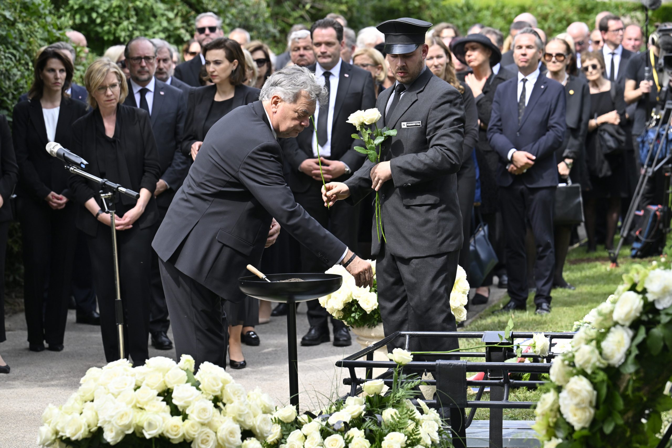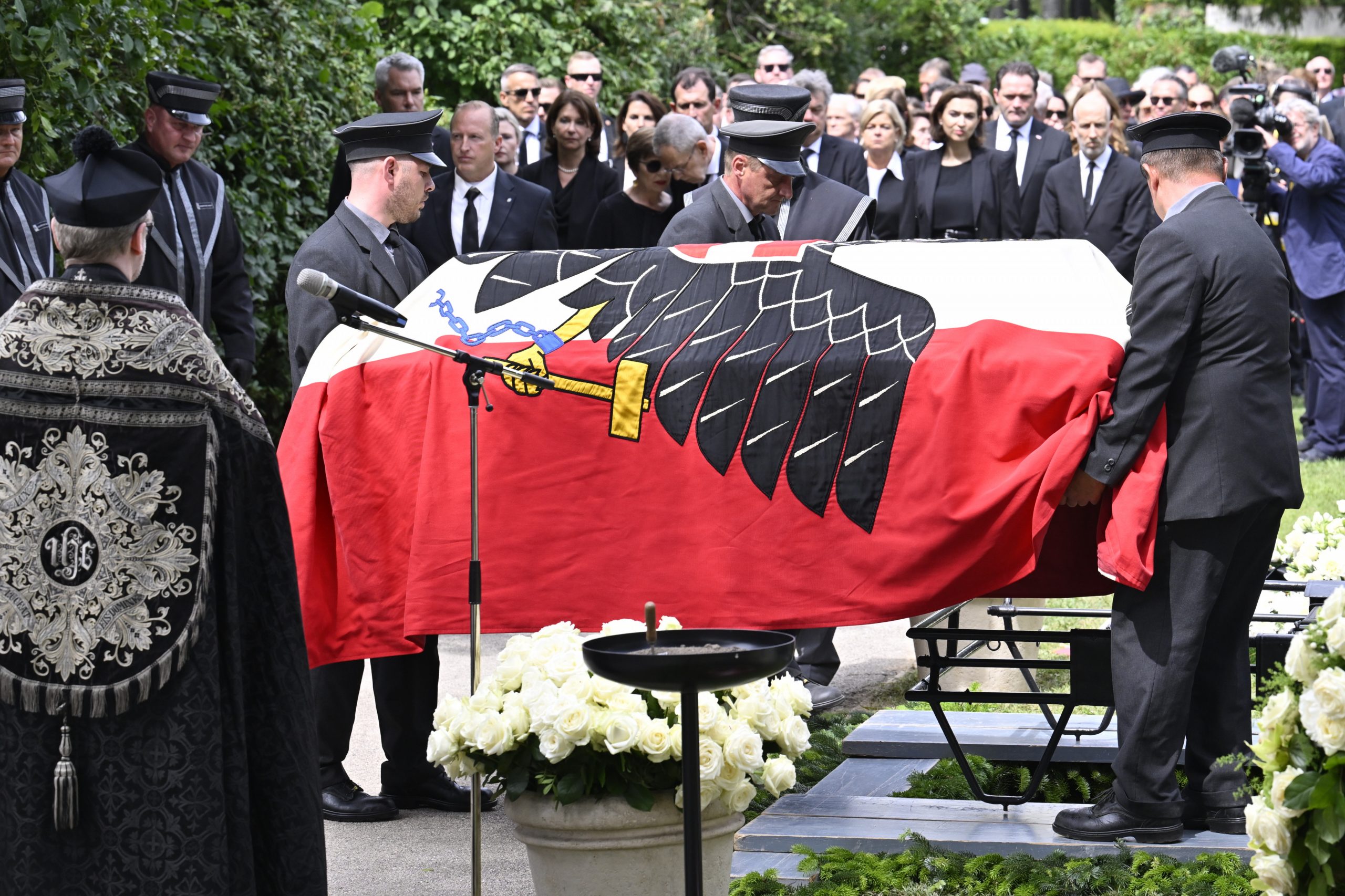Mit Polizeieskorte wurde der Sarg anschließend zum Wiener Zentralfriedhof gebracht. Die dortige feierliche Beisetzung - ebenfalls in Anwesenheit der Staatsspitze - dauerte eine halbe Stunde. Die Zeremonie leitete ein Beistand der früheren Bundeskanzlerin, der Pfarrer von Ober St. Veit, Stefan Reuffurth. Ein zuvor befürchteter Andrang blieb aus.