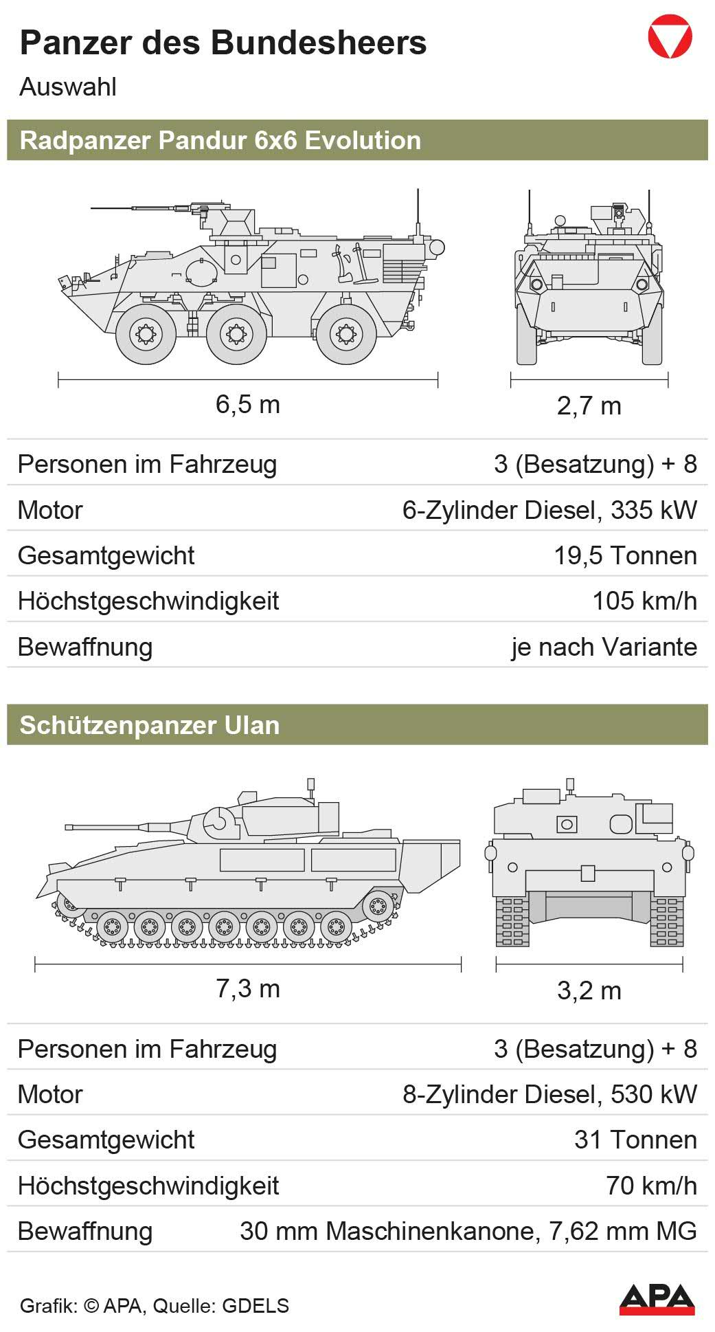 Das wurde am Donnerstag im Rahmen einer Betriebsbesichtigung des Rad- und Kettenfahrzeugherstellers General Dynamics European Land Systems-Steyr (GDELS) in Wien-Simmering im Beisein von Verteidigungsministerin Klaudia Tanner und Wirtschaftsminister Wolfgang Hattmannsdorfer (beide ÖVP) bekannt gegeben. Auch bei der "Ulan"-Modernisierung gibt es Fortschritte.