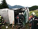 Der um zehn Kilometer zu schnell fahrende Lkw geriet vermutlich auf Grund der überhöhten Geschwindigkeit (laut Tachoscheibe 80 km/h) in einer lang gezogenen Rechtskurve auf der regennassen Fahrbahn ins Schleudern, wobei der Anhänger ausbrach und auf die Gegenfahrbahn schleuderte. Dort kam es zum Zusammenstoß des Anhängers mit dem entgegenkommenden deutschen Reisebus, wobei der Bus über den rechten Fahrbahnrand geriet, 50 Meter über eine steile Böschung fuhr und schließlich auf der rechten Busseite liegend zum Stillstand kam.