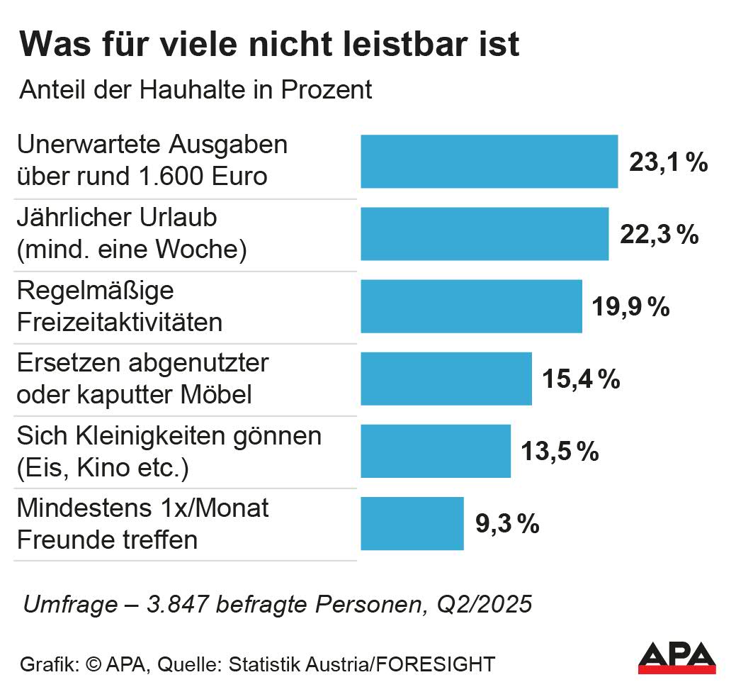 According to a survey by Statistics Austria, one-tenth of the population has difficulty covering ongoing expenses. Households with low incomes, the unemployed, and single parents are disproportionately affected, said Foresight Managing Director Christoph Hofinger. One of the consequences is increased social isolation. In a Caritas survey, about one-third of respondents agreed with the statement that they had to limit their social contacts due to rising costs, very much (eight percent) or quite a bit (25 percent). Compared to 2023, these proportions have doubled.