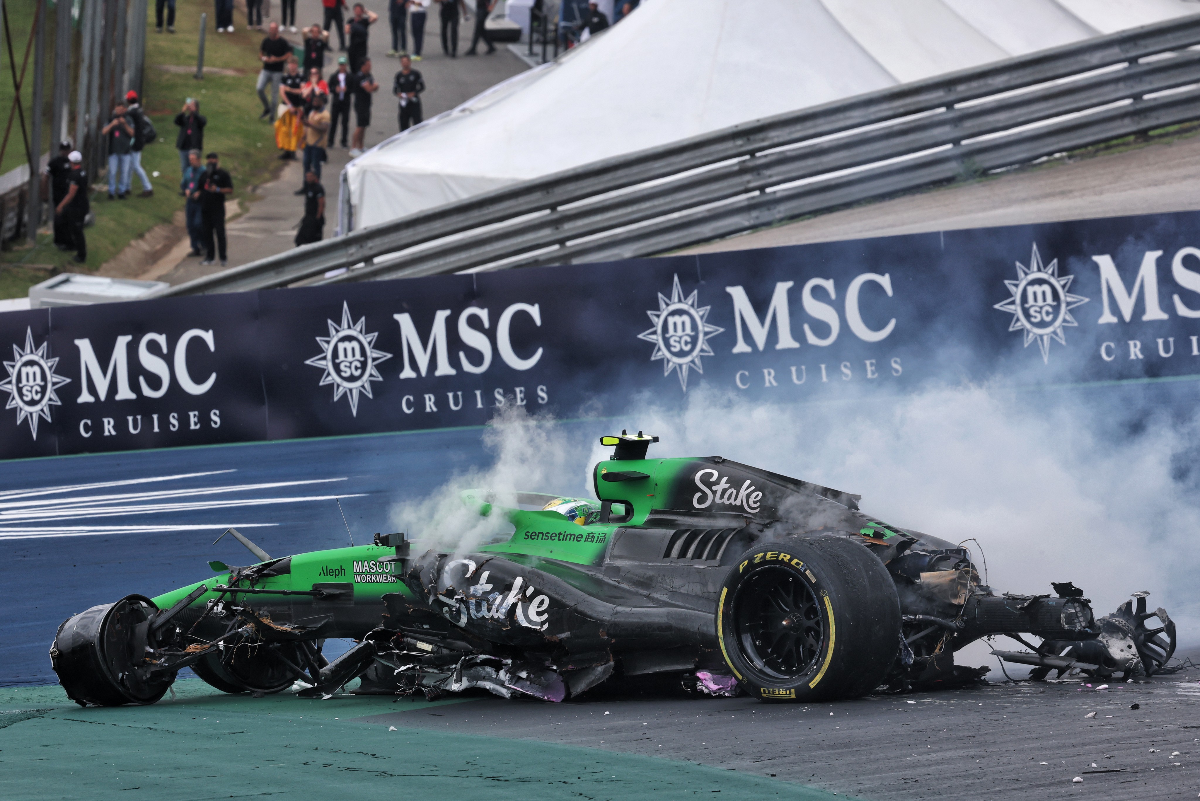 Es war ein dramatischer Moment im Sprintrennen von São Paulo am Samstagabend: Gabriel Bortoleto, Rookie im Sauber-Team, verunglückte bei Tempo 339 auf der Start-Ziel-Geraden schwer. Der Brasilianer verlor gegen Ende des Rennens plötzlich die Kontrolle über sein Fahrzeug, prallte zweimal in die Streckenbegrenzung – zunächst mit 34 g, dann sogar mit 57 g.