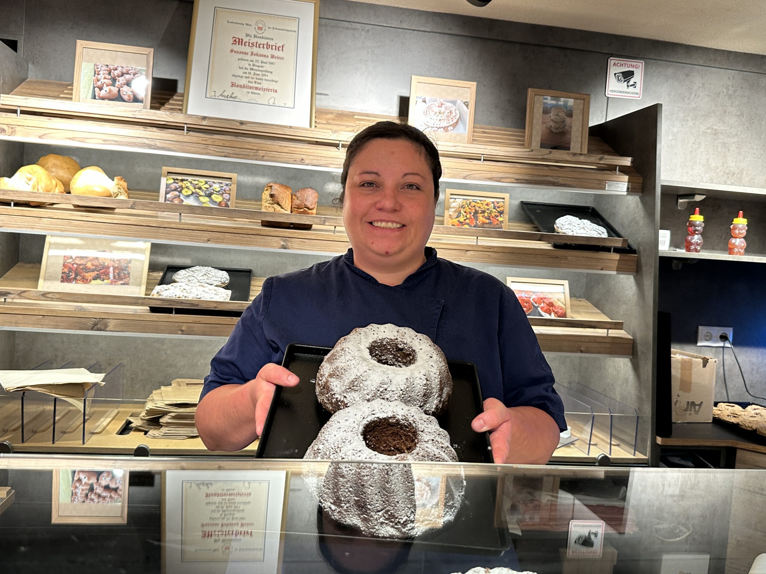 Besonders stolz ist die Konditorin auf die Spezialität des Hauses: den Gugelhupf, der nun auch im Logo der Konditorei auftaucht. "Unser Klassiker, der Ferrari, das Logo von mir, der Gugelhupf", gibt sie zu verstehen. "Zu den Hochzeiten, als wir den Bäcker Beirer noch offen hatten, hat meine Mama mindestens 40 von denen pro Woche verkauft." Teilweise sei sie mit dem Produzieren kaum mehr nachgekommen, meint Susanne Beirer.