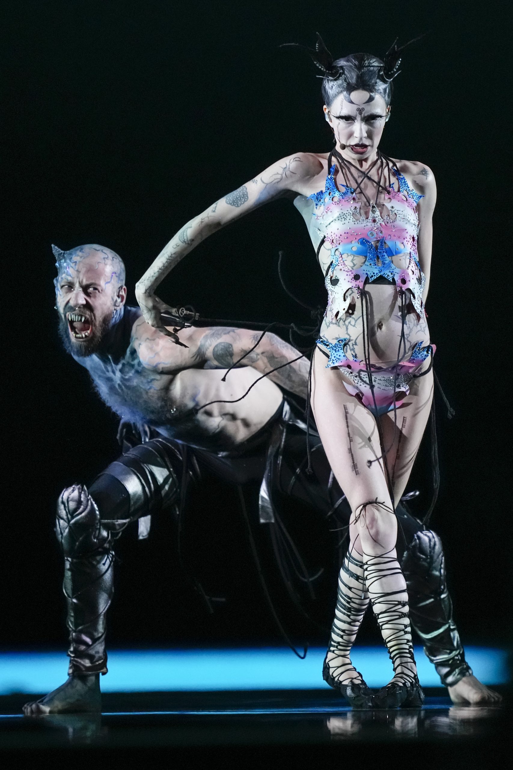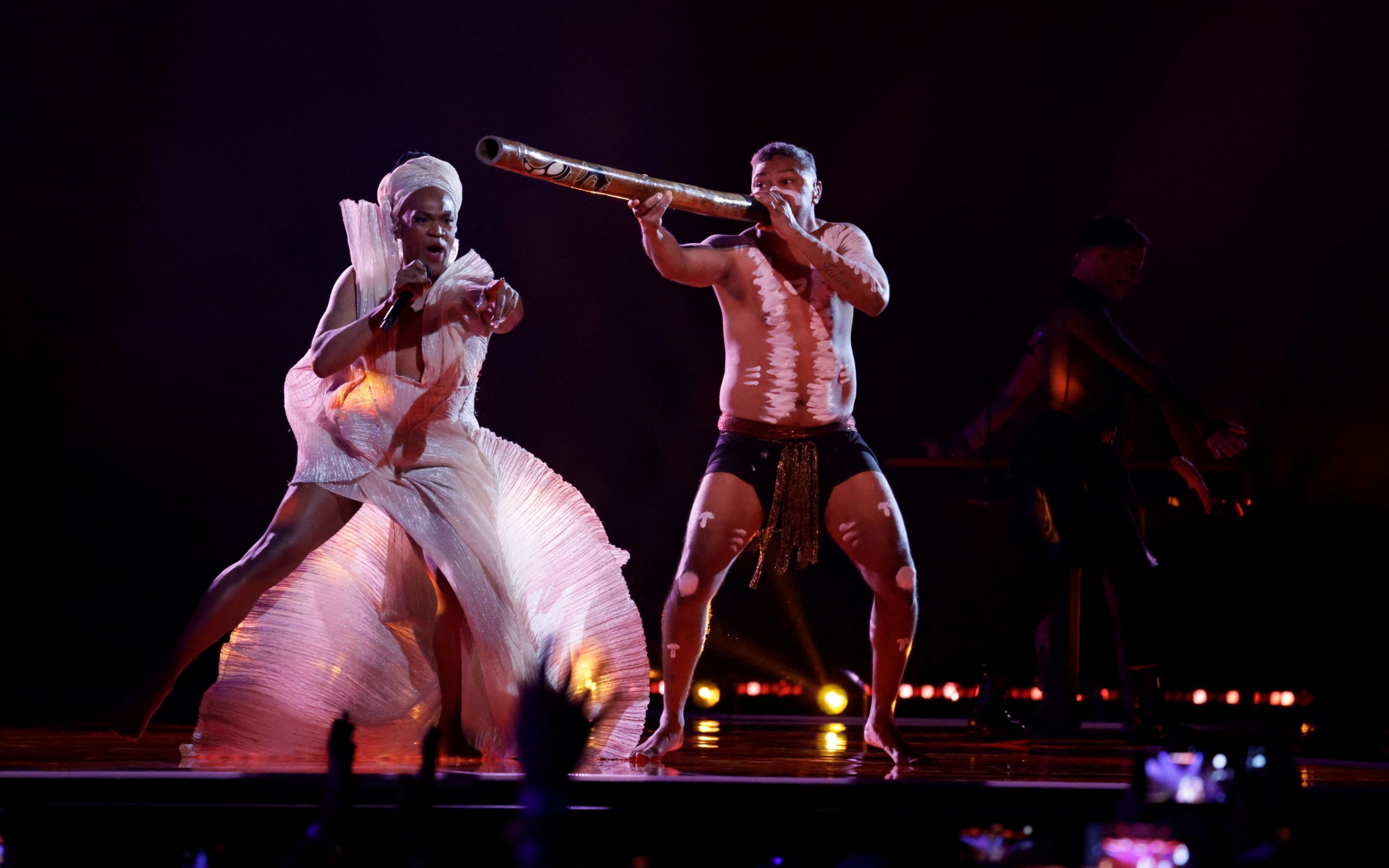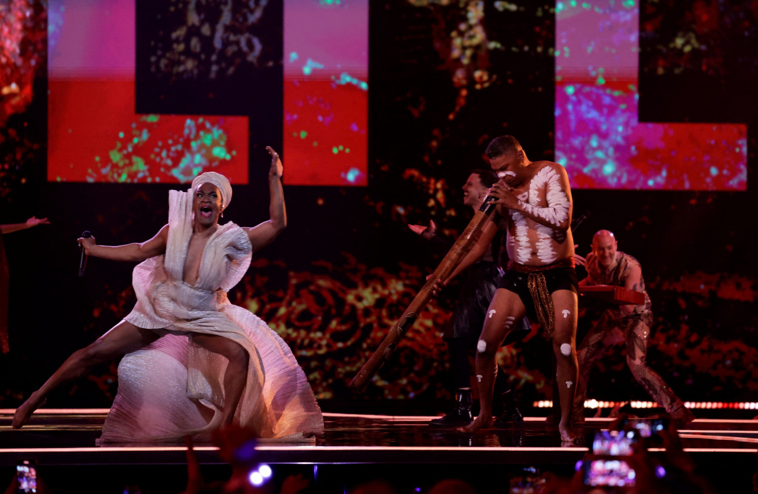 Als erster der heurigen drei Acts, die von nonbinären Personen gesungen werden, stieg Irlands Bambie Thug mit ihrem diabolisch inszenierten "Doomsday Blue" und im Kostüm mit Transflagge auf, während der sich ebenfalls nonbinär definierende Zaachariaha Fielding als Teil des australischen Duos Electric Fields mit Partner DJ Michael Ross nach einigen hörbaren Misstönen die Heimreise nach Down Under antreten muss.
