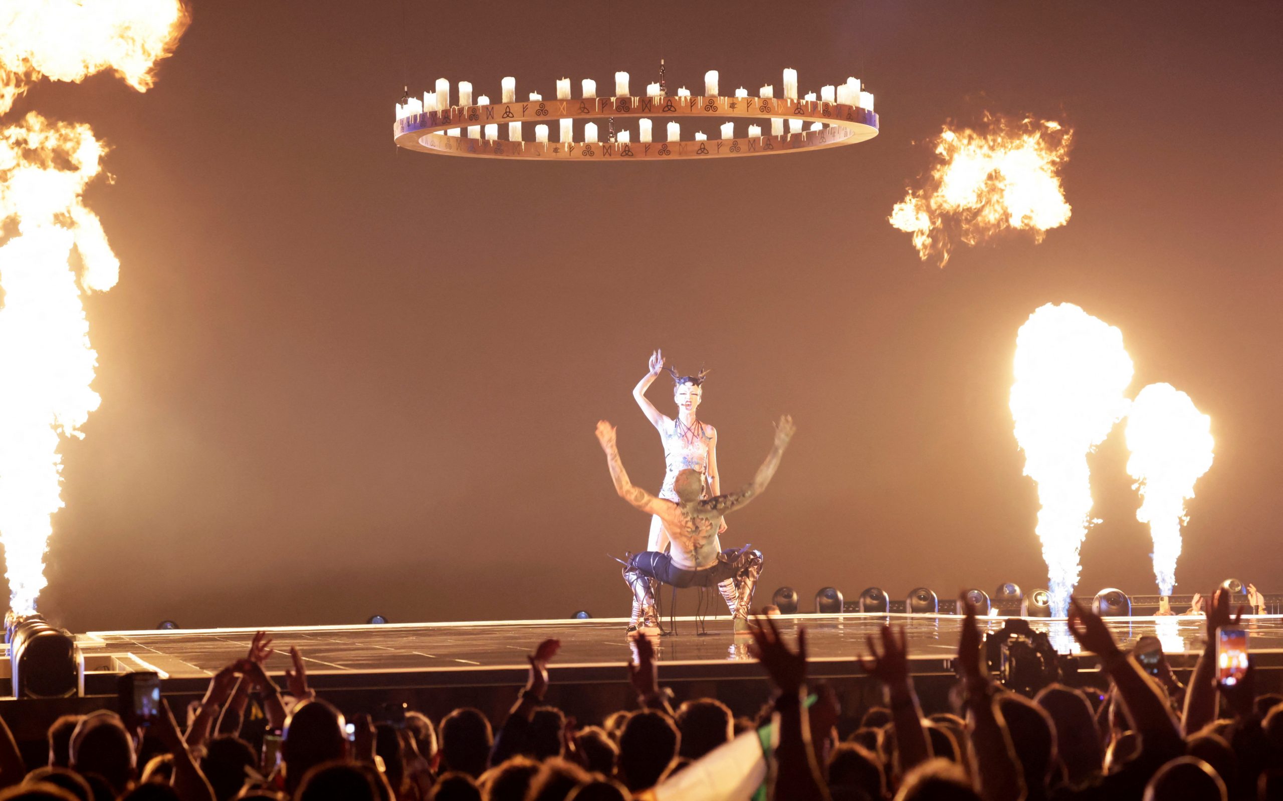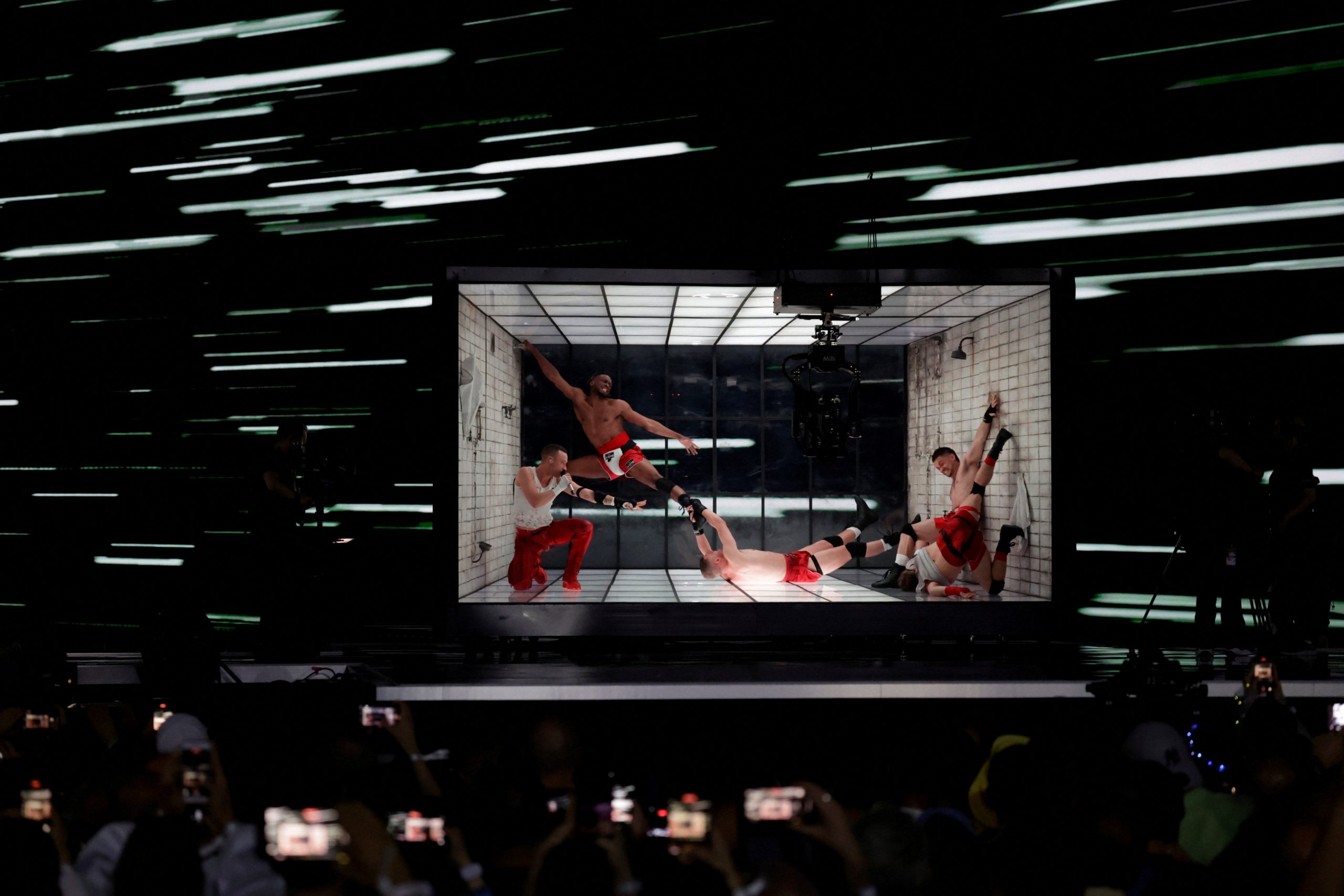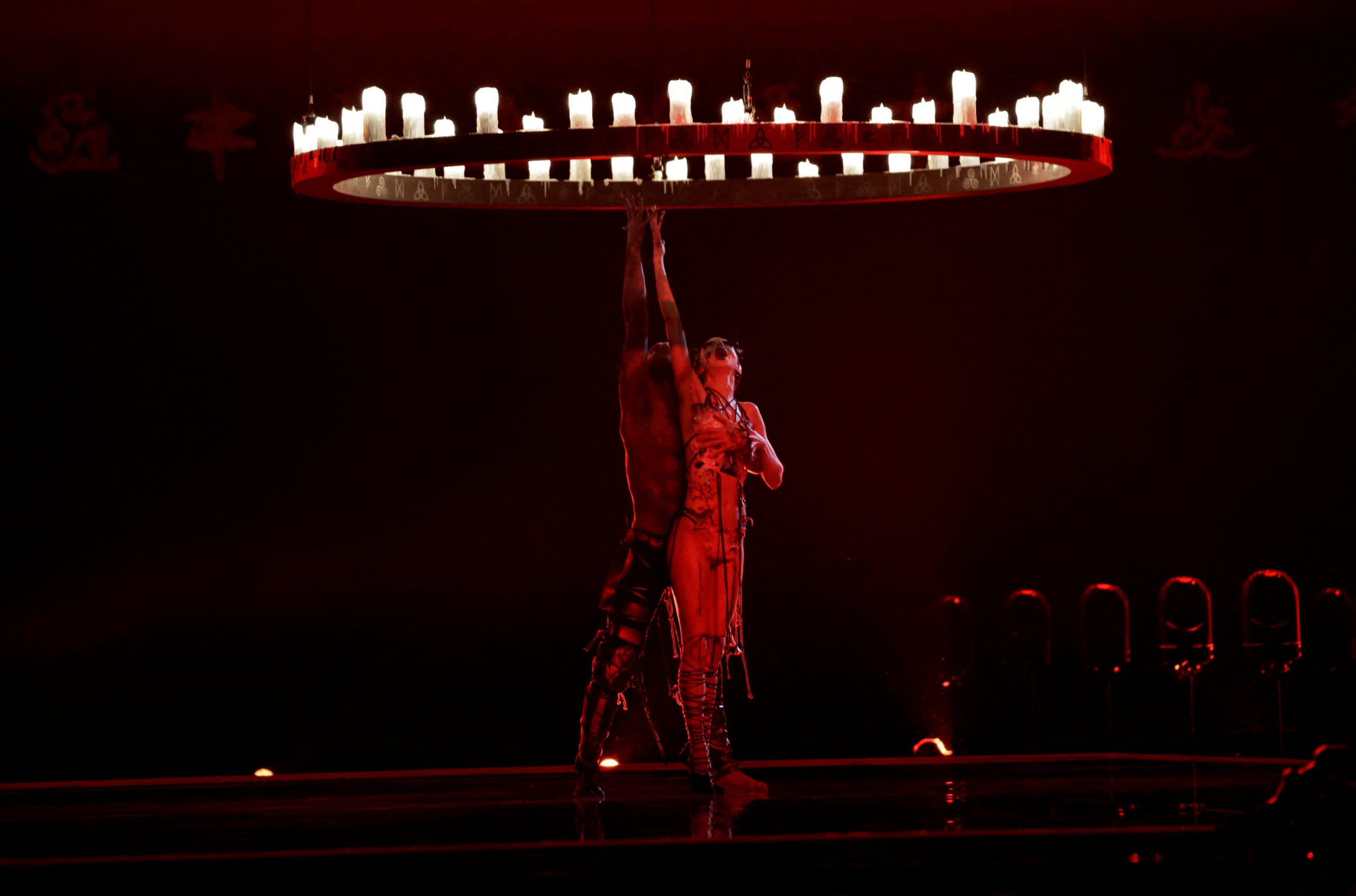 Als erster der heurigen drei Acts, die von nonbinären Personen gesungen werden, stieg Irlands Bambie Thug mit ihrem diabolisch inszenierten "Doomsday Blue" und im Kostüm mit Transflagge auf, während der sich ebenfalls nonbinär definierende Zaachariaha Fielding als Teil des australischen Duos Electric Fields mit Partner DJ Michael Ross nach einigen hörbaren Misstönen die Heimreise nach Down Under antreten muss.