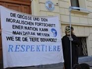 RespekTiere hatte einen Grundforderungskatalog an die rumänische Regierung zusammengestellt und wollte diesen im Rahmen der am Donnerstag Vormittag vor der Botschaft abgehaltenen Demonstration dem Botschafter übergeben; ein diesbezüglicher Versuch einer Terminvereinbarung per E-Mail war ignoriert worden, so wurde versucht, das Papier im Zuge des Protestes an seine Zuständigkeit auszuhändigen. Den Botschafter bekamen die Tierschützer leider nicht zu sehen, die Forderungen konnten jedoch abgegeben werden.