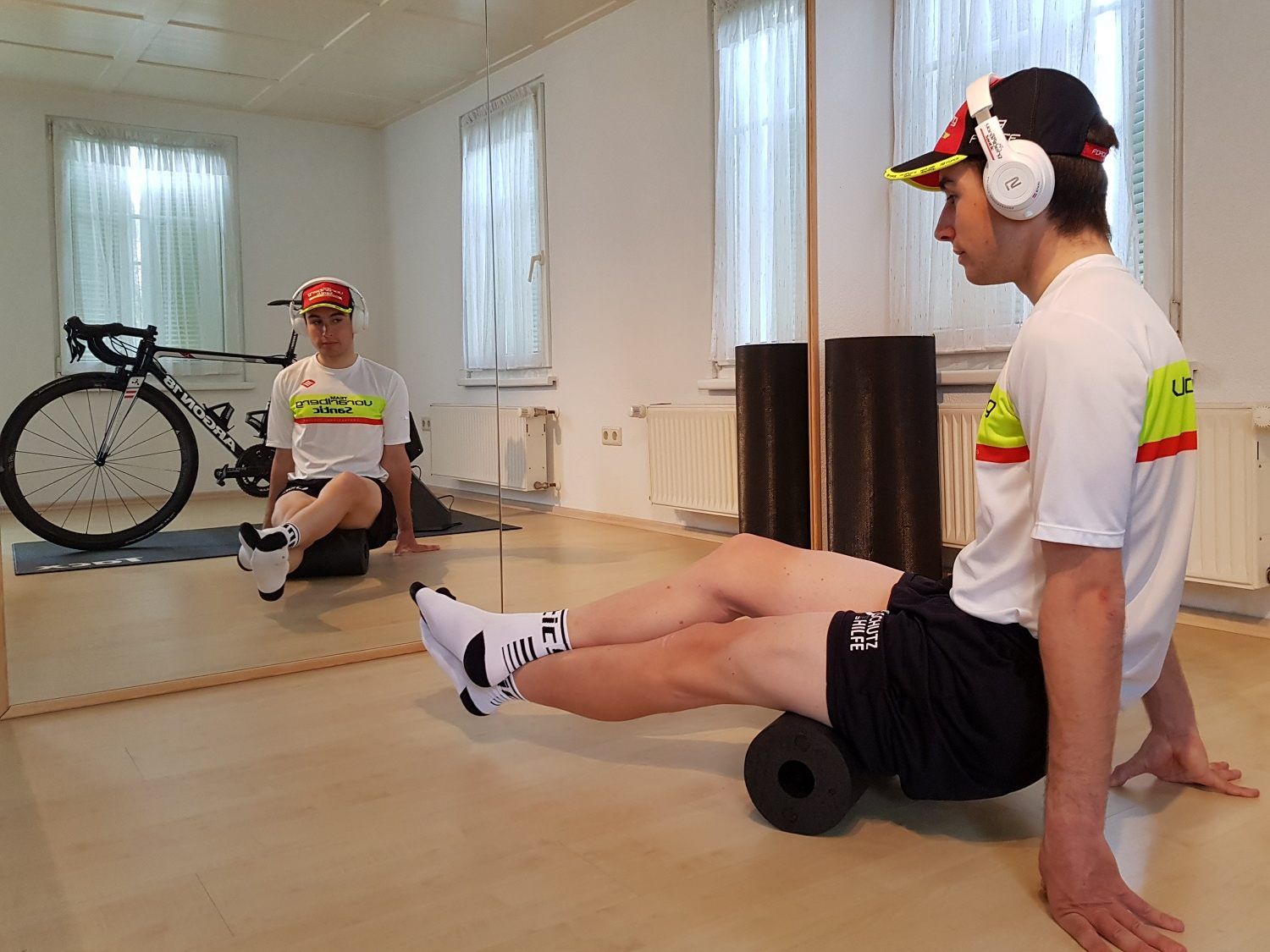 „Ich versuche mich trotz allem fit zu halten und mache natürlich viel Indoor. Grade mit den neuen virtuellen Möglichkeiten wie Zwift Radtraining fällt dies ein bisschen leichter. Stabi-, Kraft- und Rollentraining stehen an der Tagesordnung. Neben diesen Einheiten achte ich sowieso in der jetzigen Zeit noch mehr auf meine Ernährung, um das Immunsystem optimal zu versorgen. Ich koche viel, backe gesundes Brot usw.… um den Körper hierbei zu stärken. Ich kann mich aktuell auch recht gut motivieren mit neuen Herausforderungen, um dann wieder fit zu sein, wenn es wieder losgeht!“