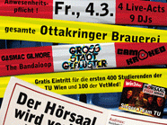 Ganz nach universitärem Vorbild zum Semesterstart greift man aufgrund von Kapazitätsengpässen erneut auf eine zusätzliche Live-Übertragung zurück. Somit sind sämtliche BesucherInnen im ottakring’schen Audimax stets informiert über das Treiben in Hörsaal 1, die Konzerte können bei Bedarf jederzeit live übertragen werden.