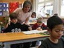 Damit allen genützt” sei, hat die Volksschule Hard-Mittelweiherburg nun das Projekt Fremdsprache Deutsch” eröffnet. Seit Schulbeginn 2008 unterrichtet Luzia Baumschlager neu an der Schule. Denn bei der Einschreibung schaut sich Engstler nun jeden Schüler persönlich an. Reichen die Deutschkenntnisse nicht, führen wir die Kinder zwei Jahre lang als außerordentliche Hörer”. Damit steht jedem Kind pro Woche eine zusätzliche Deutschstunde zu, die Luzia Baumschlager hält. Zehn Stunden unterrichtet sie heuer. Kommendes Jahr wollen wir das Modell auf die zweiten Klassen ausweiten”, kündigt Engstler an. Dann wird sie 20 Stunden bei uns sein.”