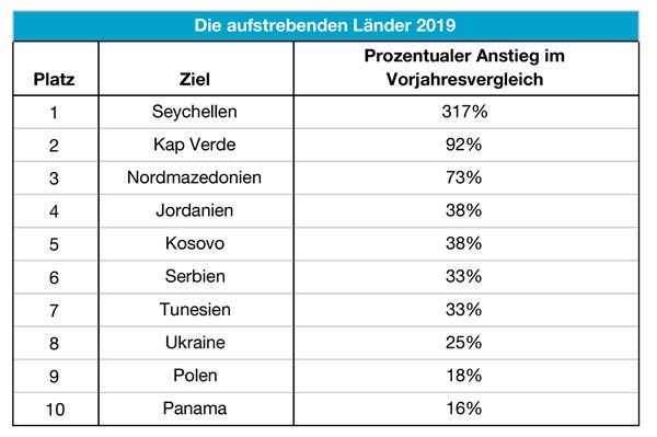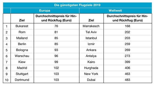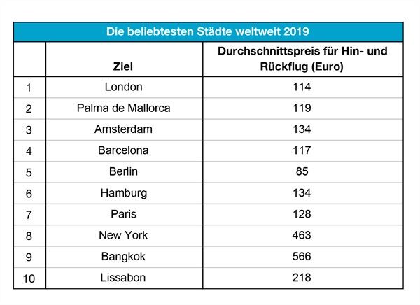 Das Ranking der beliebtesten Flug-Reiseziele 2019