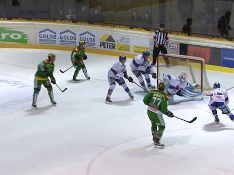 Yan Stasny trifft gleich zweimal, sodass Fassa- Keeper Scola verärgert sein Spiel beendet.