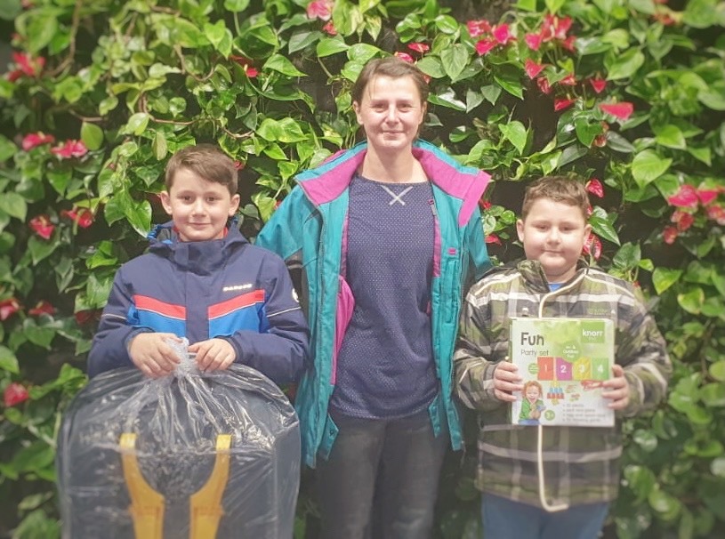 Julia und ihre Söhne stauben gleich zwei Preise ab! Auf dem Rodel und Kinderspiel-Set haben sie sich riesig gefreut. Viel Spaß mit den Preisen!