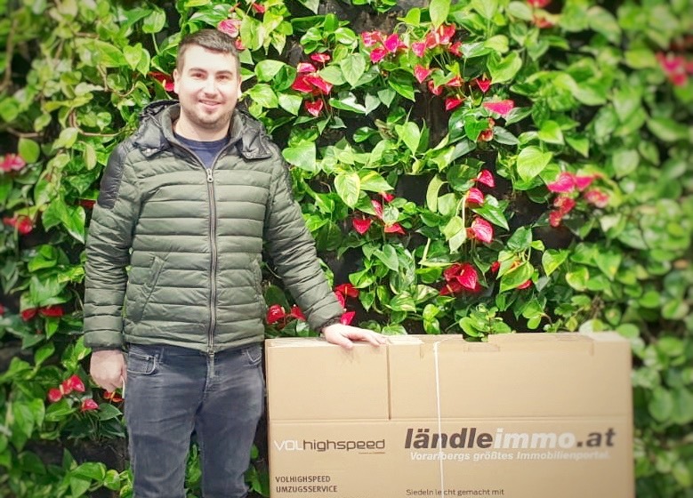 Daniel holt seine 10 Umzugskartons ab.