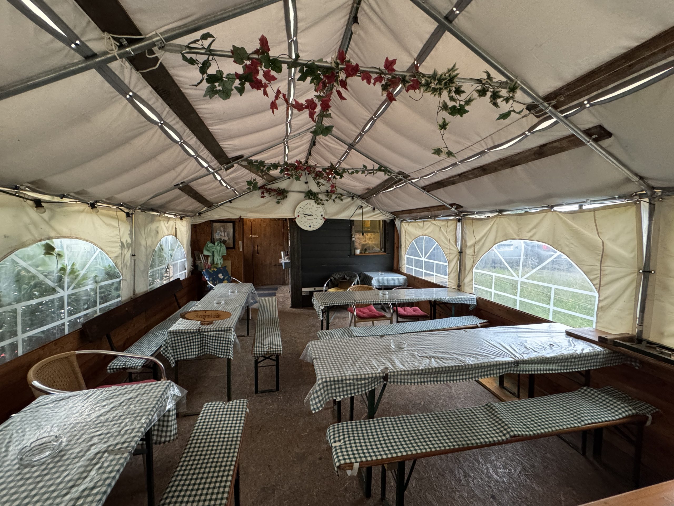 Aus einem einfachen Kühlanhänger mit einem Zelt davor entwickelte sich ein uriger Stadel. Anfangs lagen im Zelt noch Hackschnitzel am Boden, Strohballen dienten als Wände und Biertisch-Garnituren als Einrichtung. Bald wurde jedoch richtig gebaut – und so entstand ein Ort, an dem Jäger, Musikanten und Stammgäste zusammenfanden und bis heute geblieben sind.