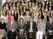 1. Reihe v. l.: Mag. Christine Schreyer, OStR. Mag. Hannes Mayer, Direktor Dr. Mag. Mathilde Kostal, OStR. Mag. Johann Muxel, Klassenvorstand Mag. Irmgard Gartner, Mag. Rudi Riedmann